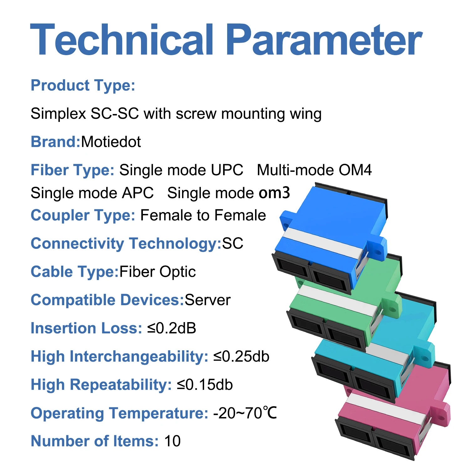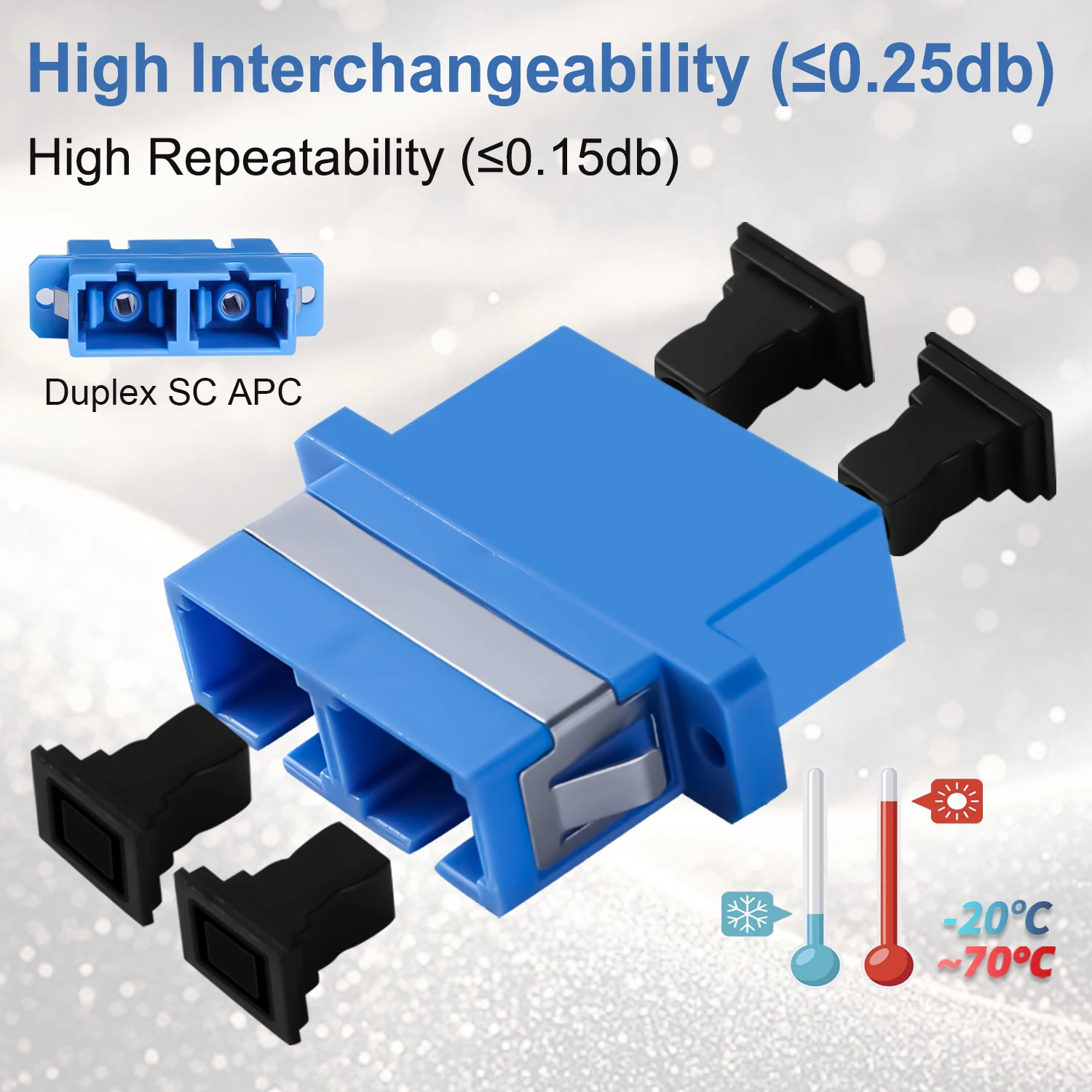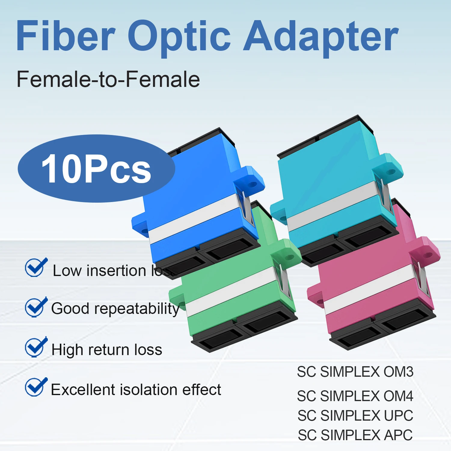 10 Pcs LC APC/UPC/OM3/OM4 Couplers, Duplex Fiber Optical Adapters Cable Connectors SM with Panel Mounting Wing Flange Ftth