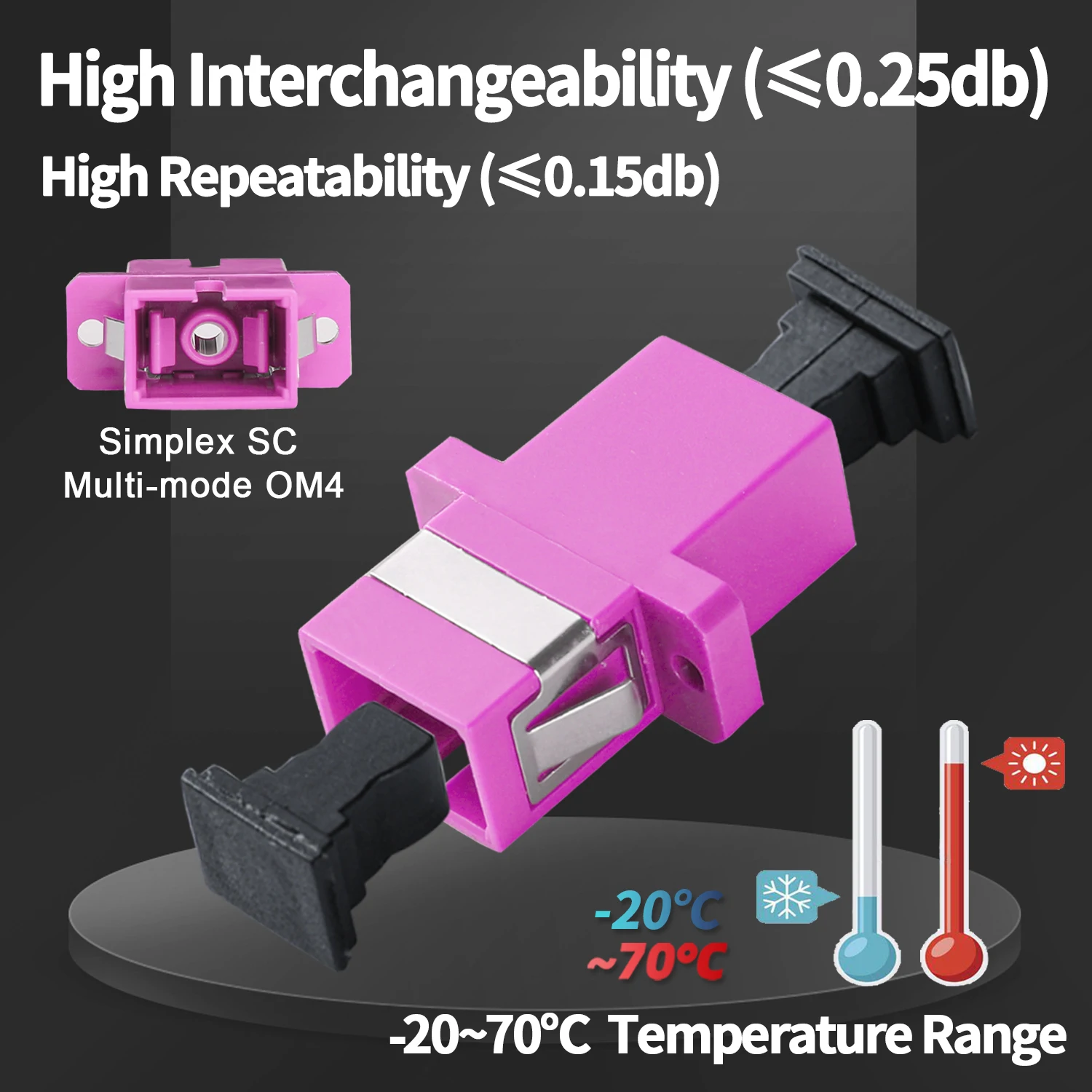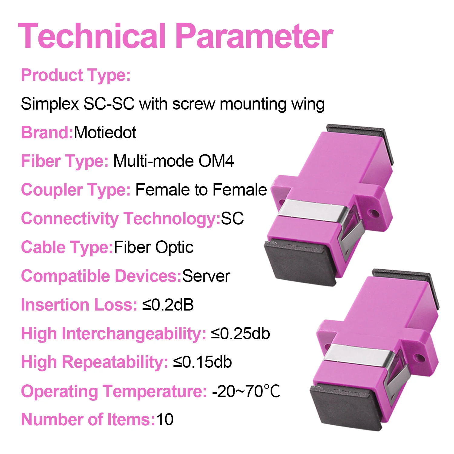 10 Pcs SC OM4 Multi-Mode Couplers, Simplex Fiber Optical Adapters Cable Connectors MM Flange Ftth