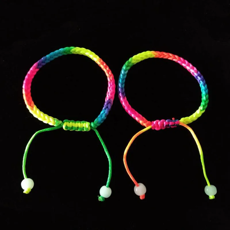 10 x Cotton Rainbow Macrame Multi-Colour Braided Cord Thread Adjustable Opening Cuff Bracelets Unisex Handmade Jewelry