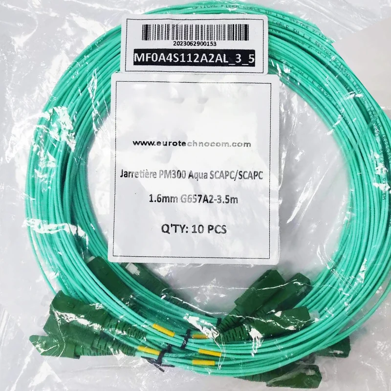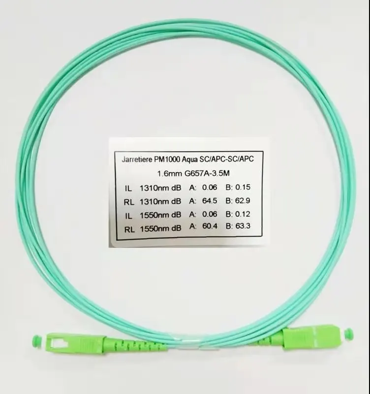 ·Fiber information: 3.5m(11ft) G657A2 SC/APC to SC/APC Fiber Patch Cable, SC cable single mode is 1.6mm. Sheath material: LSZH fiber; Color: Aqua. The outer diameter is 1.6mm