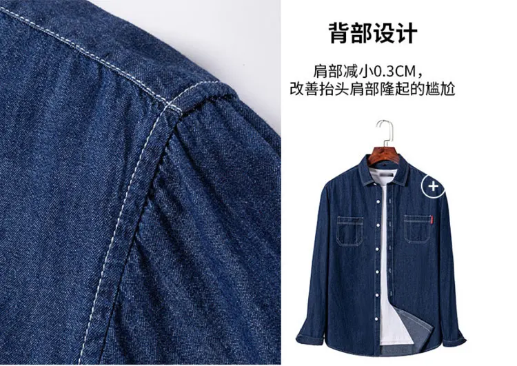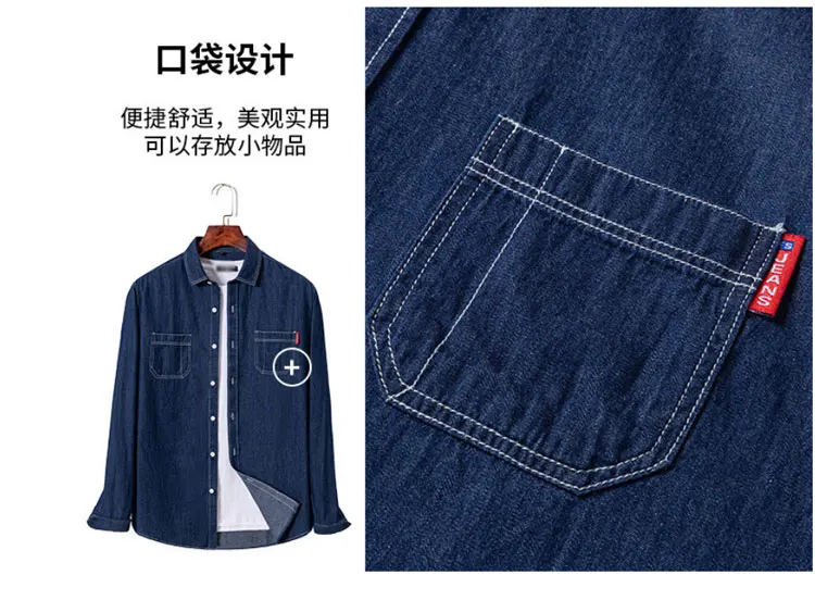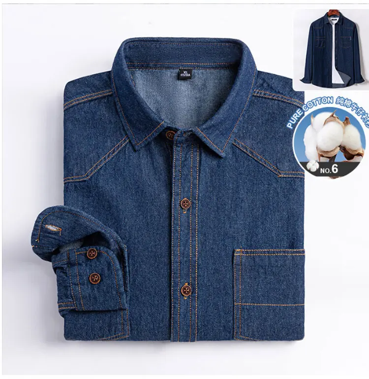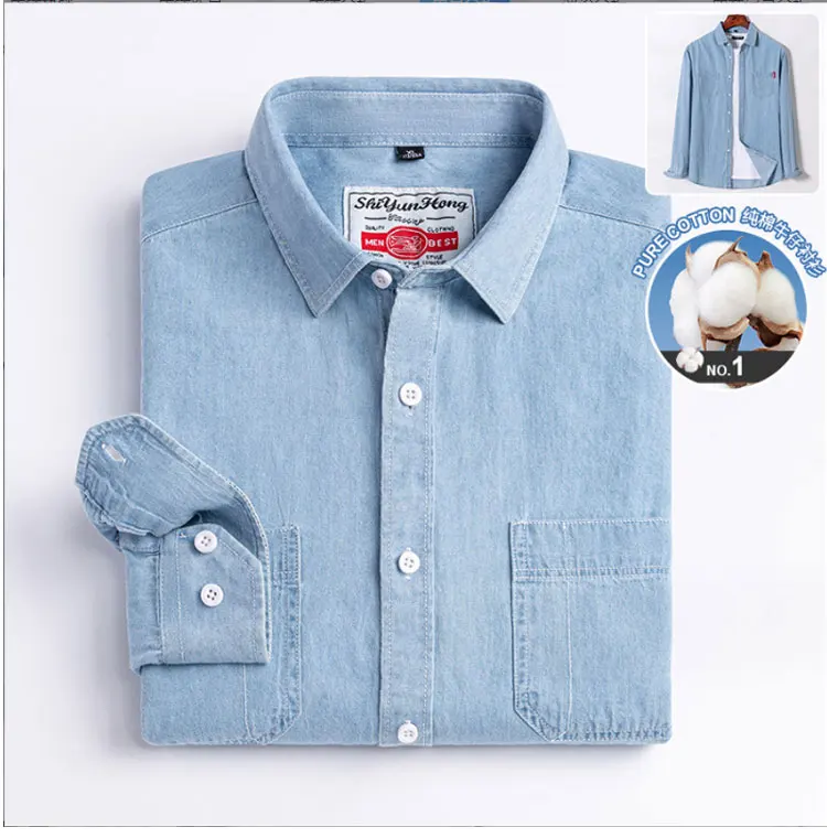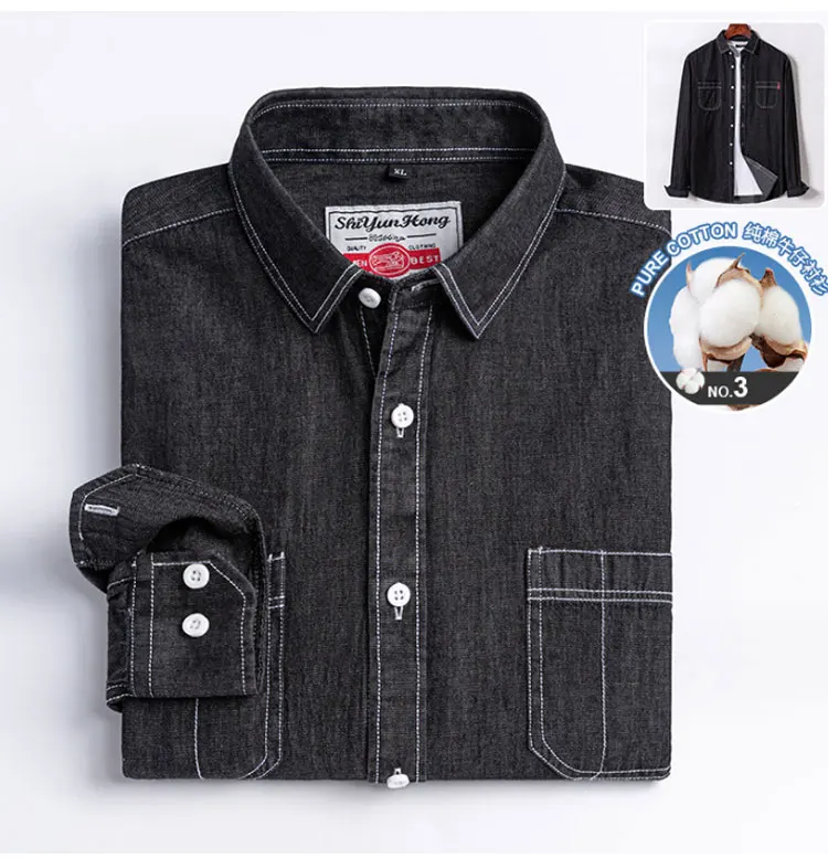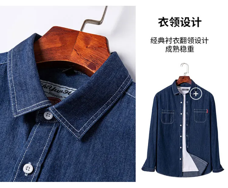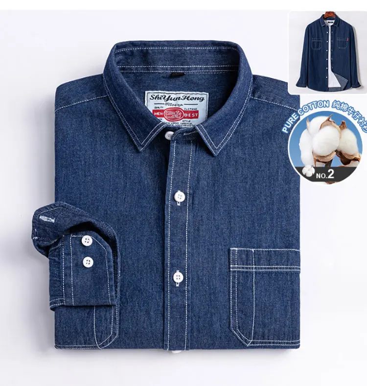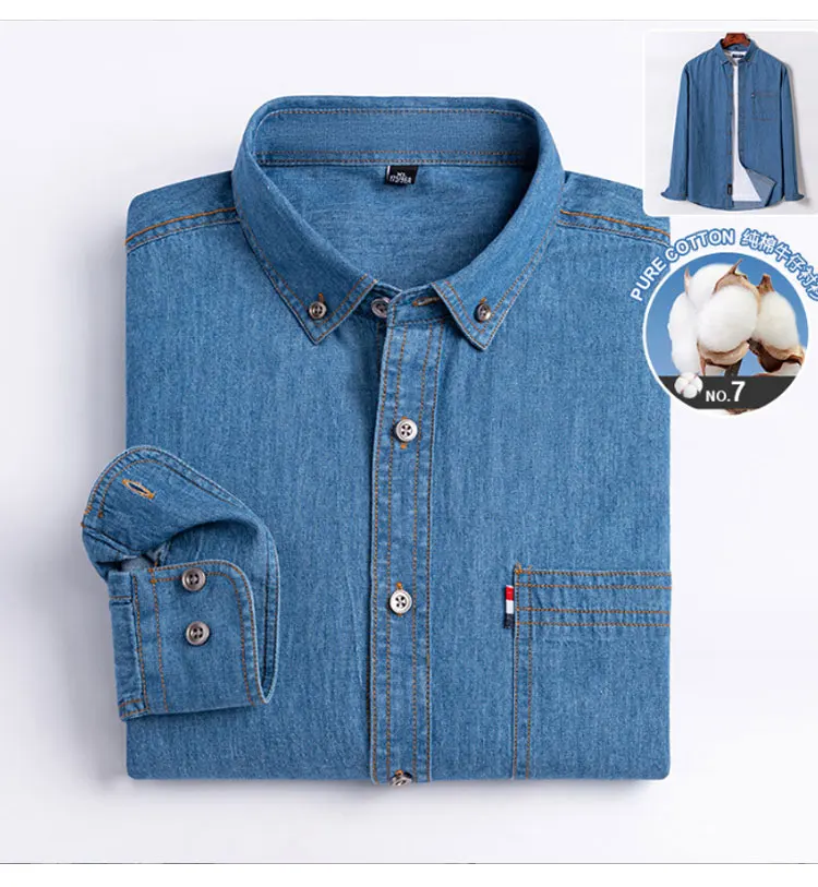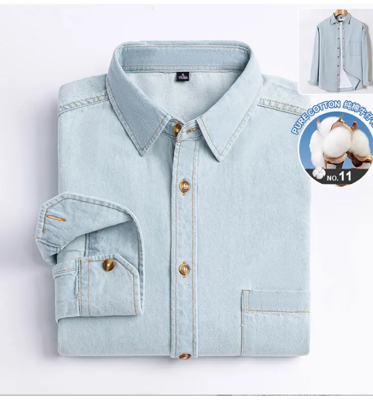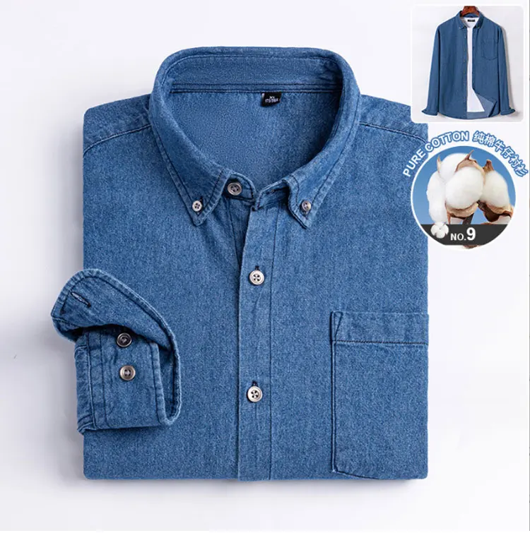 100% cotton denim young and middle-aged men’s long-sleeved shirt autumn and winter casual no-iron solid color high quality