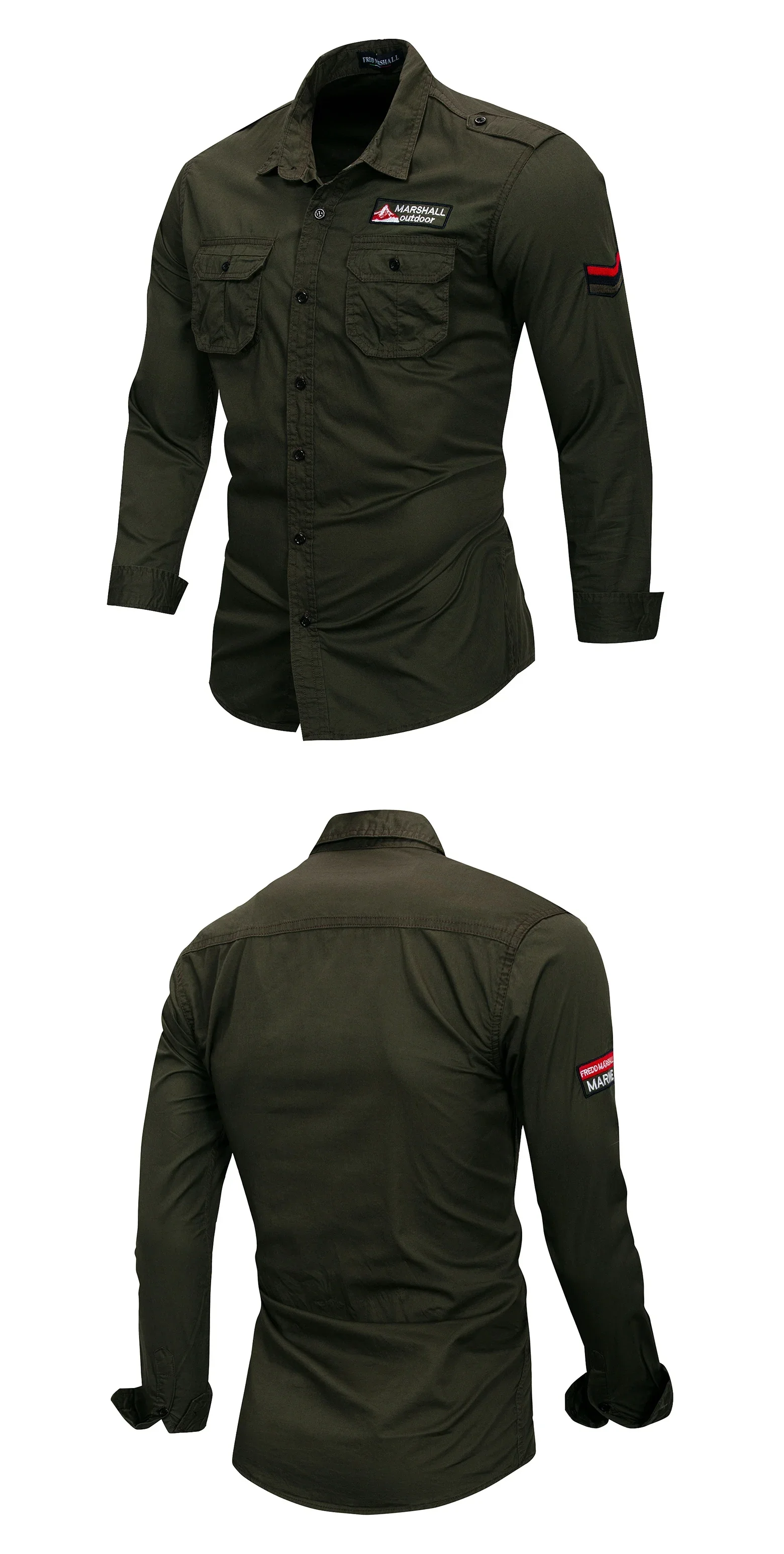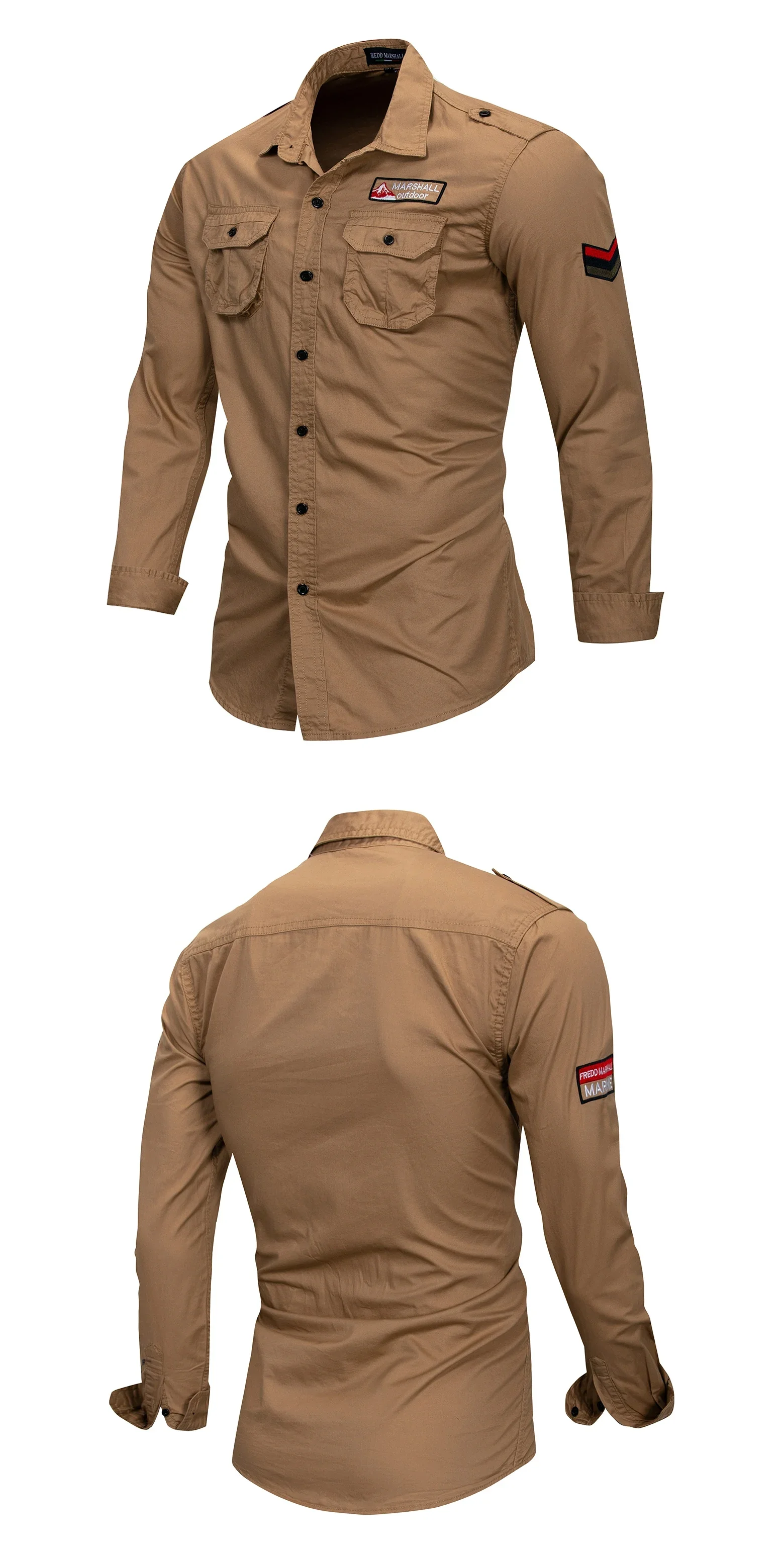 100% Cotton Military Shirt Men Long Sleeve Casual Shirt Male Cargo Work Pocket Shirts Tactical with Embroidery Badge Tops Spring