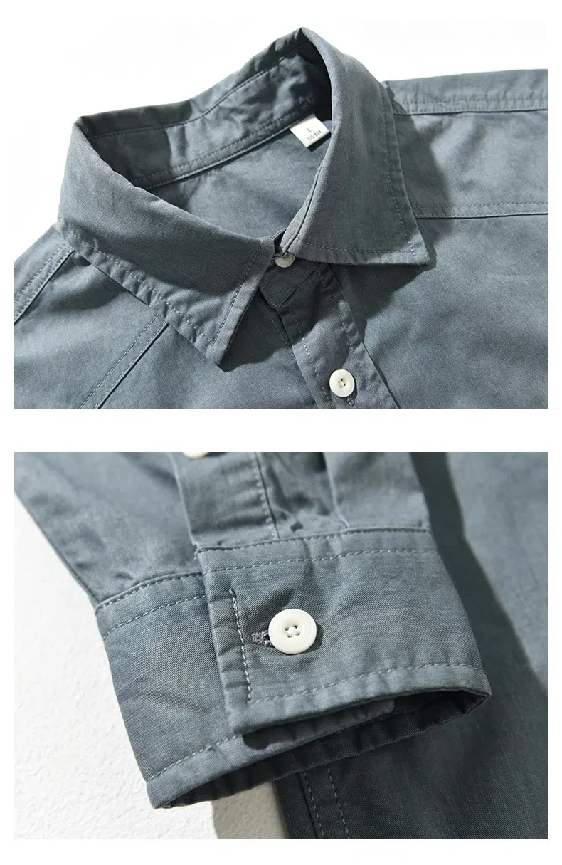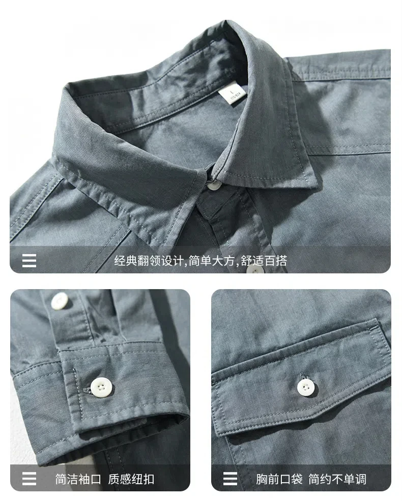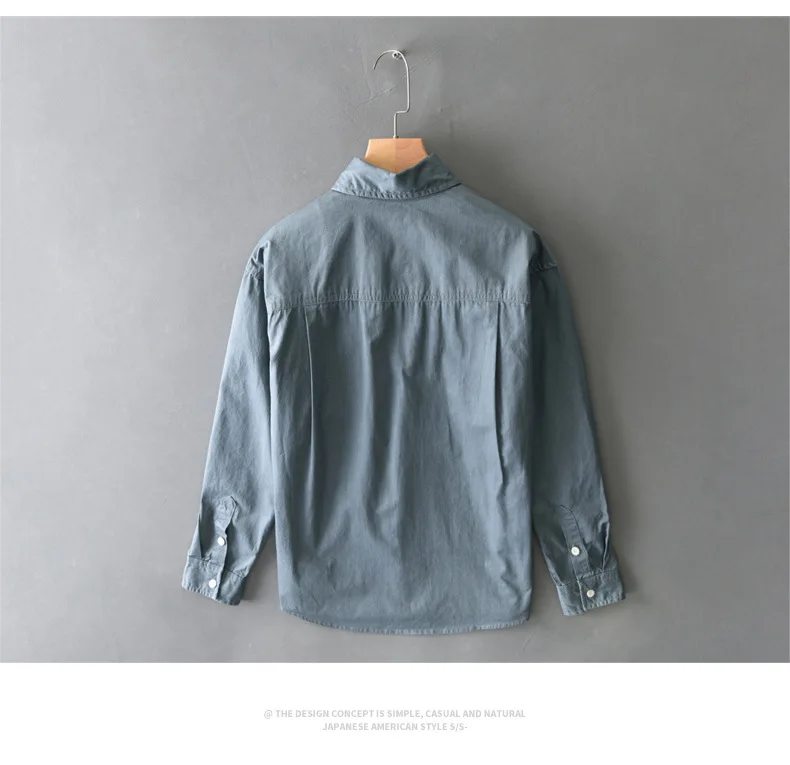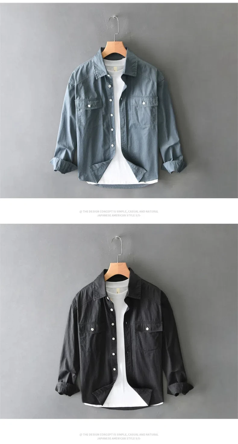 100% cotton retro cargo casual long-sleeved shirt for men spring all match loose shirt coat
