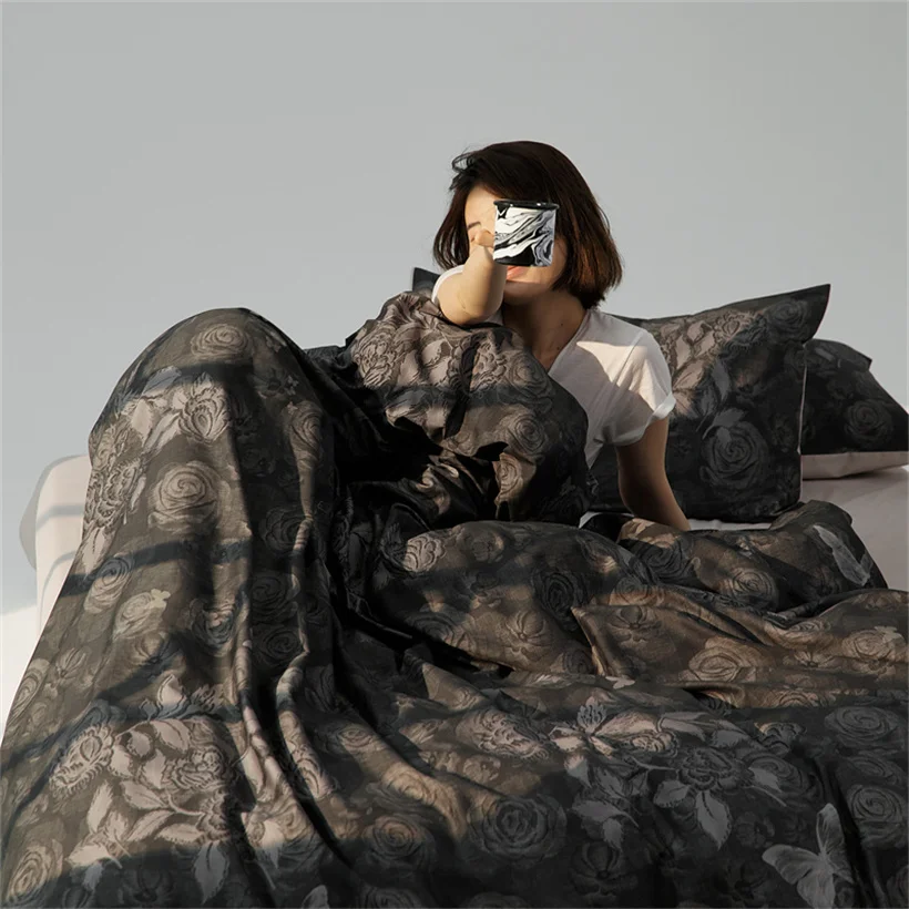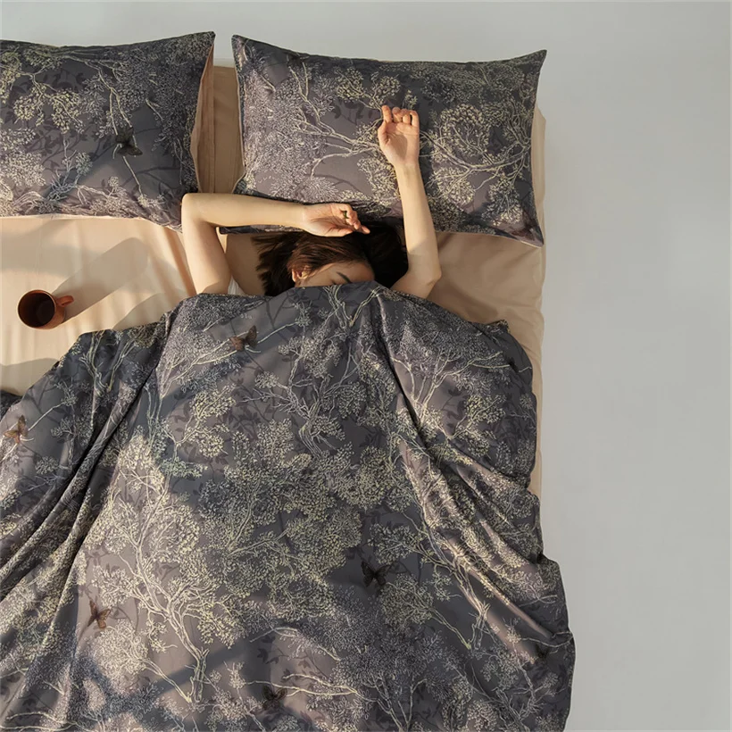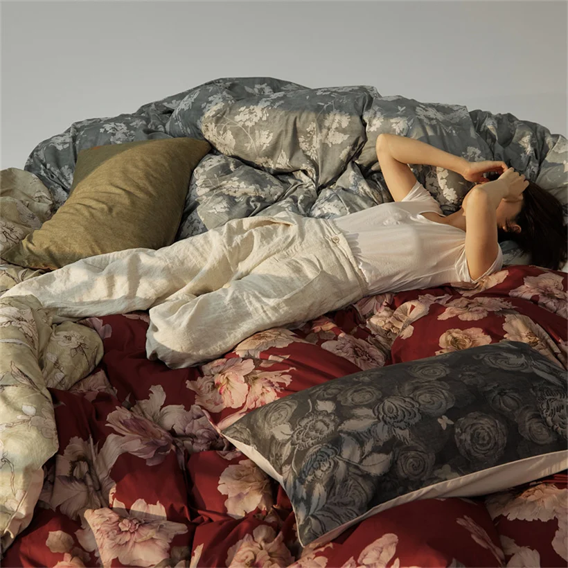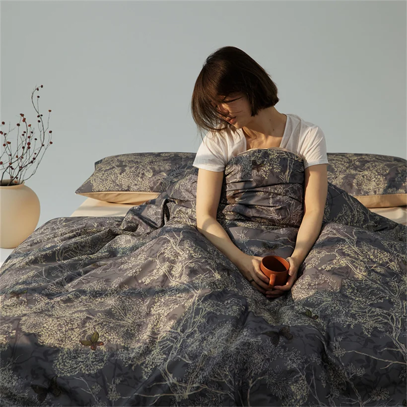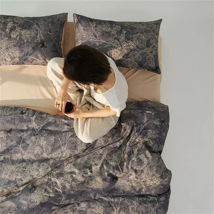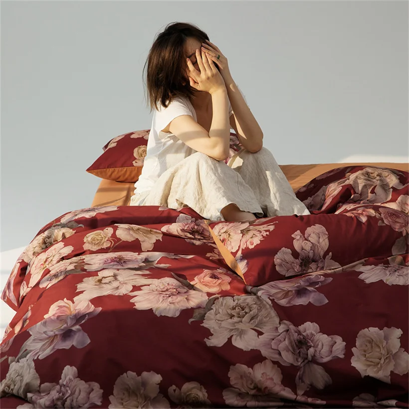 100% Egyptian Cotton Bedding Sets Bed Linen Ru Europe Queen King Family Size Duvet Cover Sheet Pillowcase Printed Bed Sheet Set