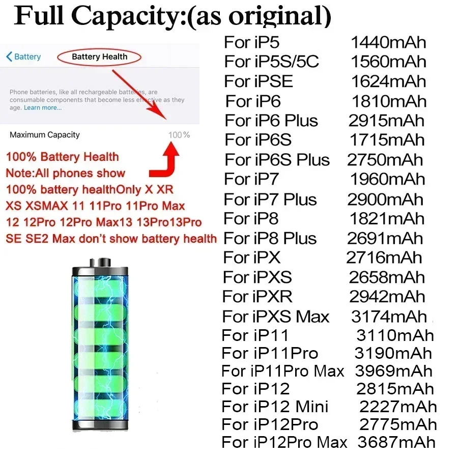 100% Original New Battery for IPhone X XS XR XS MAX for IPhone 11 11Pro 11Pro MAX Replacement Bateria for Apple 5S 6S 7 8Plus