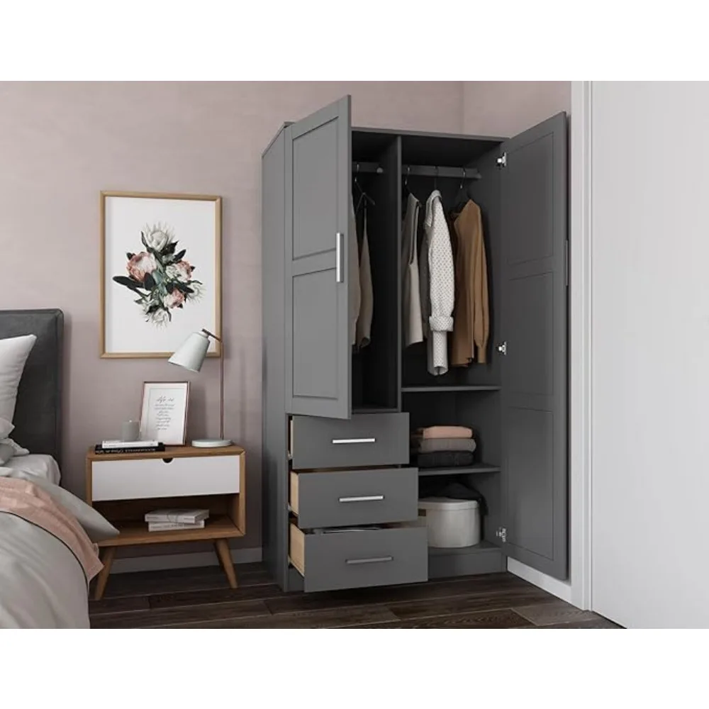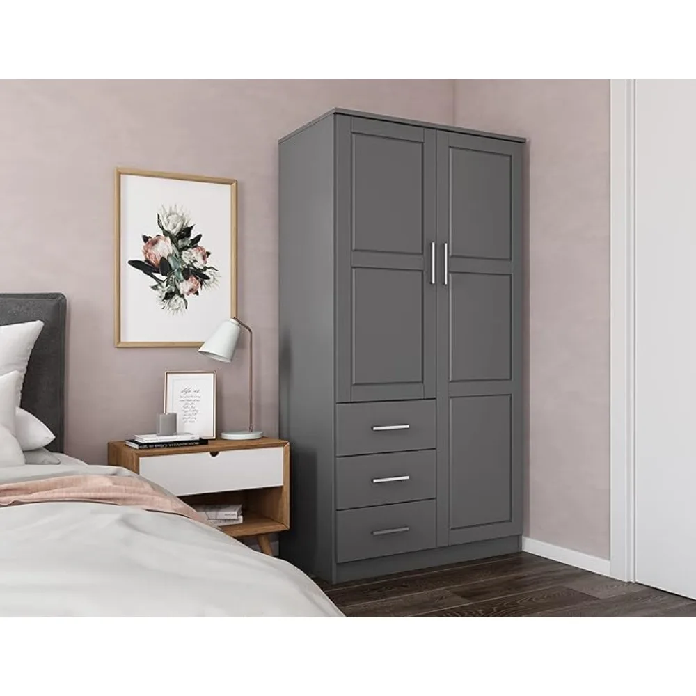 100% Solid Wood Metro 2-Door Wardrobe w/Raised Panel Doors,2Clothing Rods, 2Shelves,Renewable Eco-Friendly Wood bedroom closets