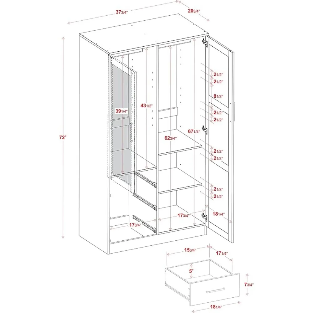 - Overall Size: 37.75″w x 72″h x 20.75″d