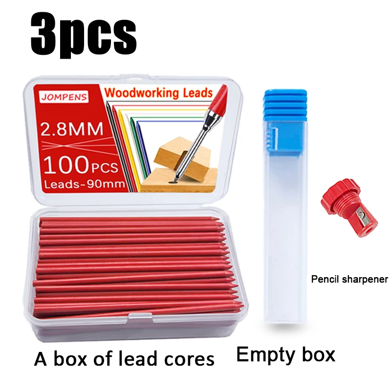 100 Tricolor 2.8mm Woodworking Pencil Leads for Marking and Drawing, Not Easy To Break, with A Small Box Pencil Sharpener