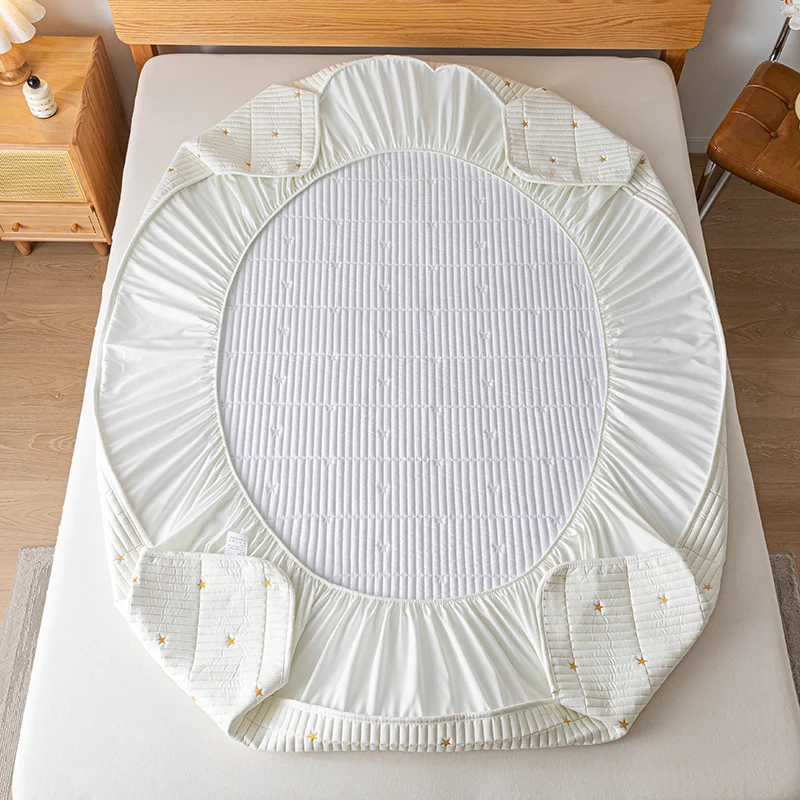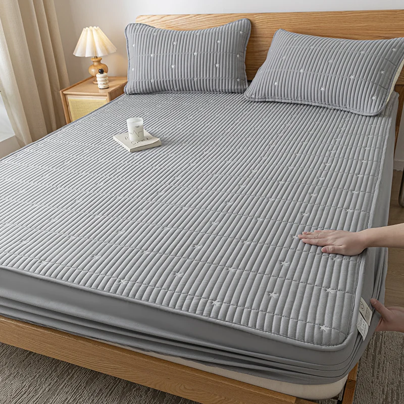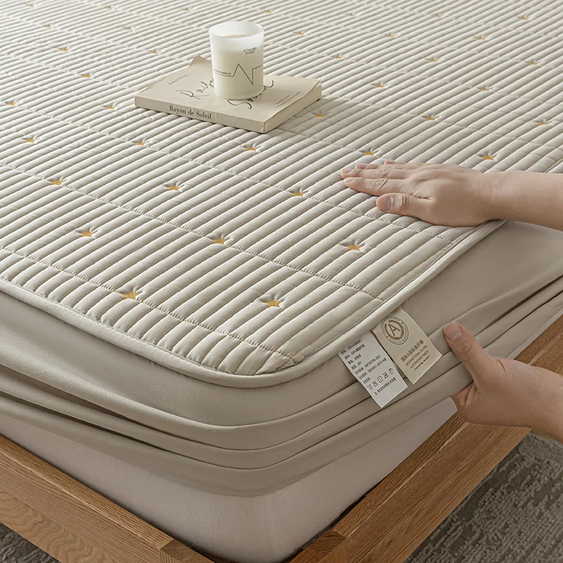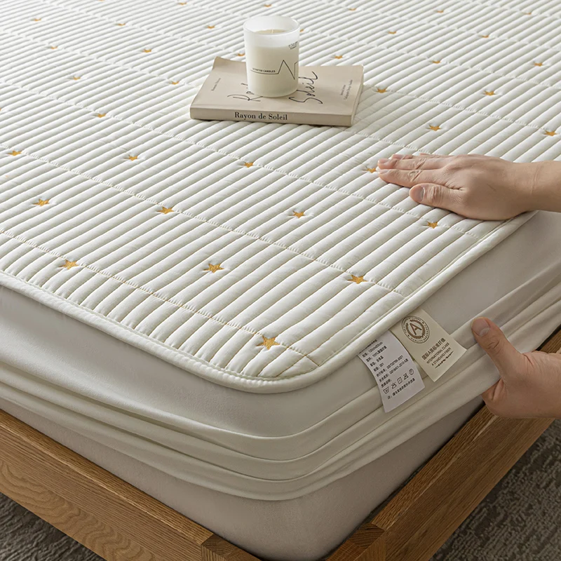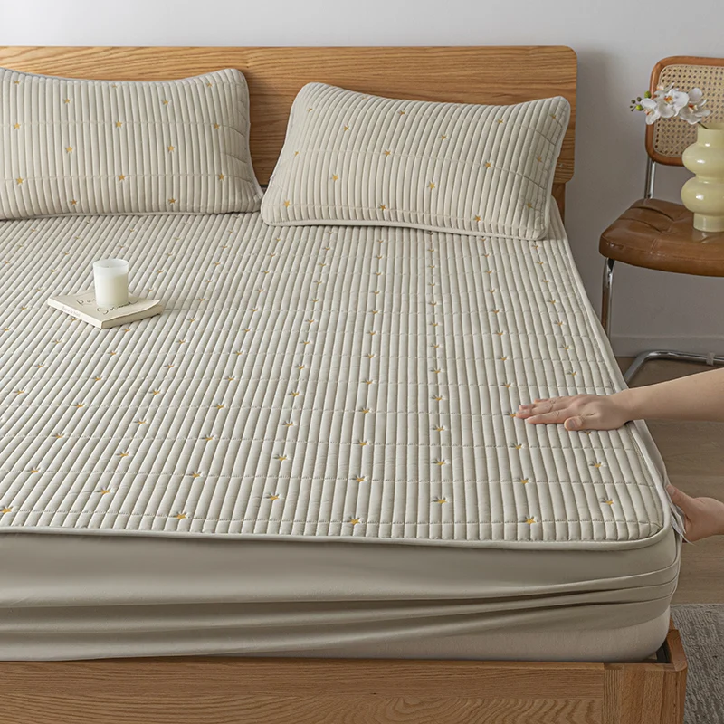 100% Waterproof Embroidered Mattress Pad Protector Breathable Adjustable Fitted Bed Sheet Quilted Bed Cover 150/160/180/200/220