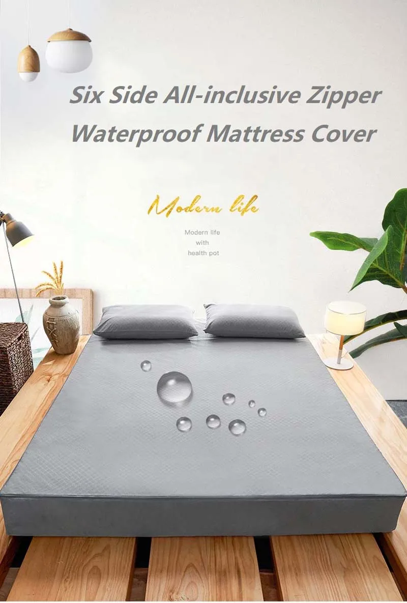 100% Waterproof Mattress Cover Six Side Zipper All-inclusive Mattress Protector Cover Queen Customized Quilted Bed Fitted Sheet