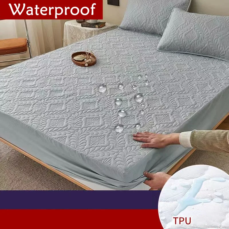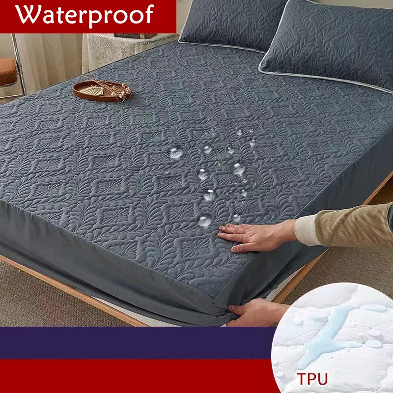 100% Waterproof Mattress Protector Cover, Elastic, Queen, King Size, Fitted Bed Sheet, Solid Bed Cover, Pillowcase Need Order,
