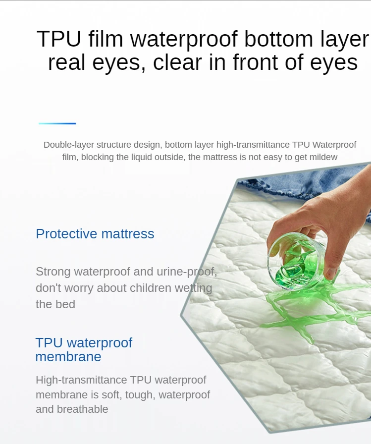 Material: Polyester Process: Waterproof Mattress: width 5-30cm Function:Only the front is waterproof, but the side is not.