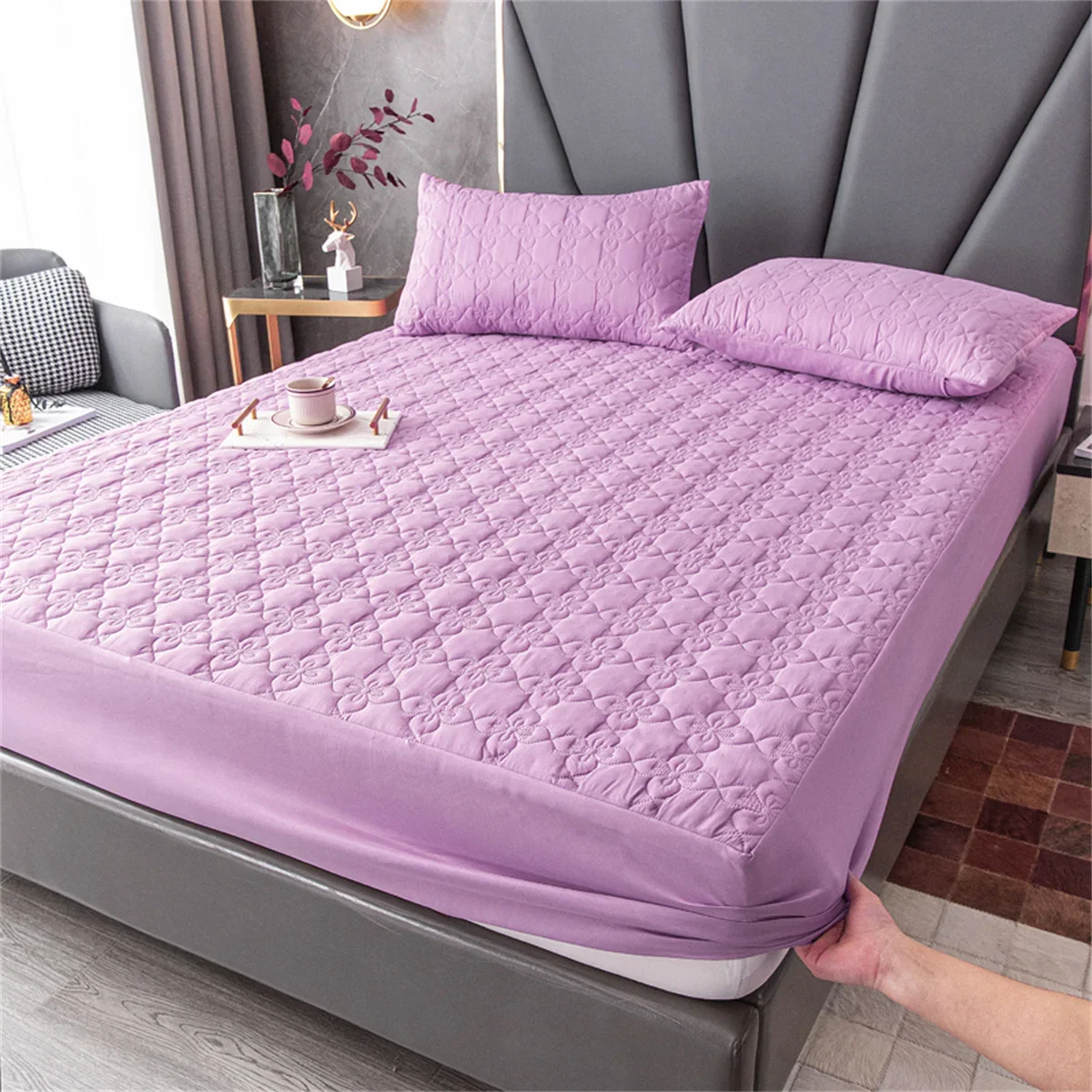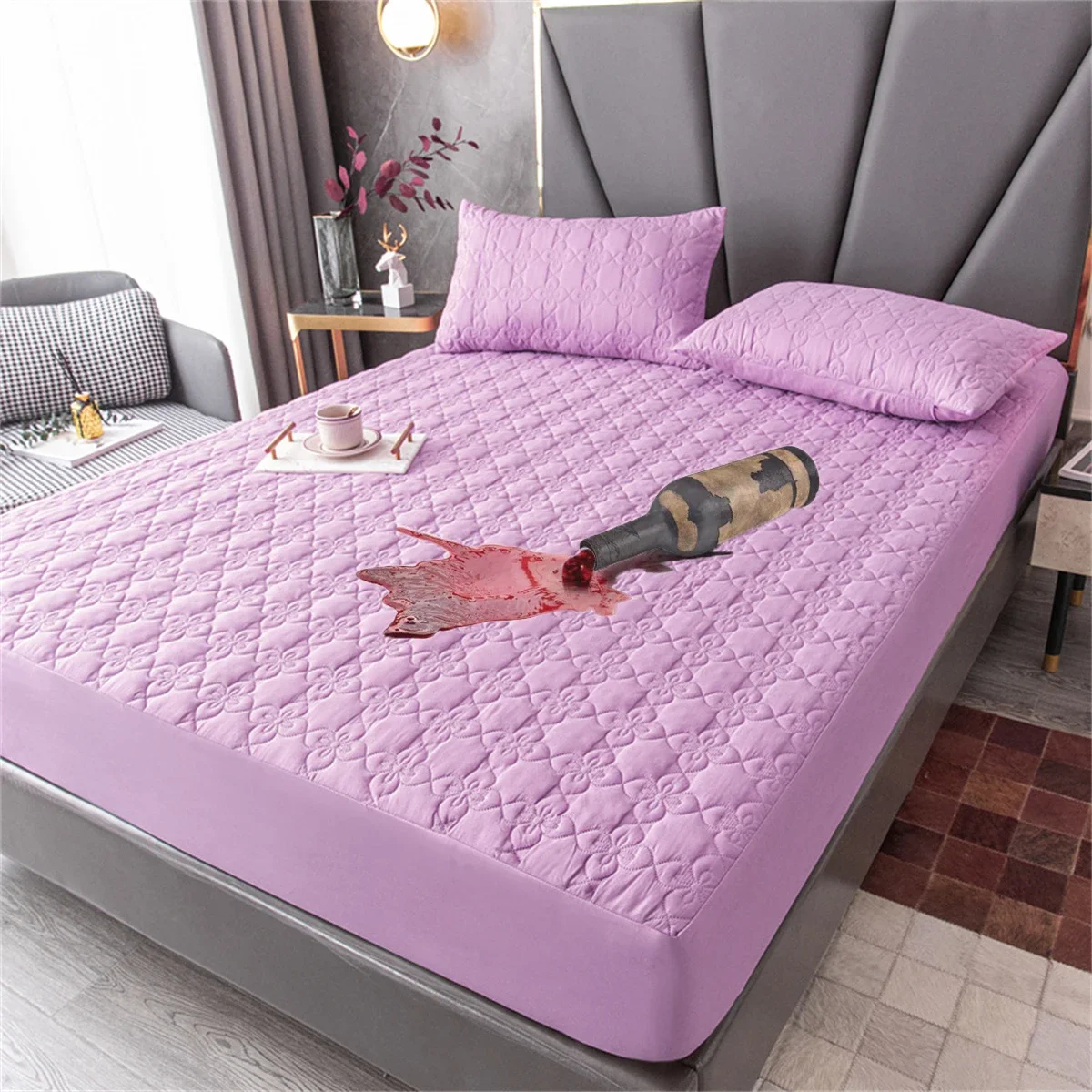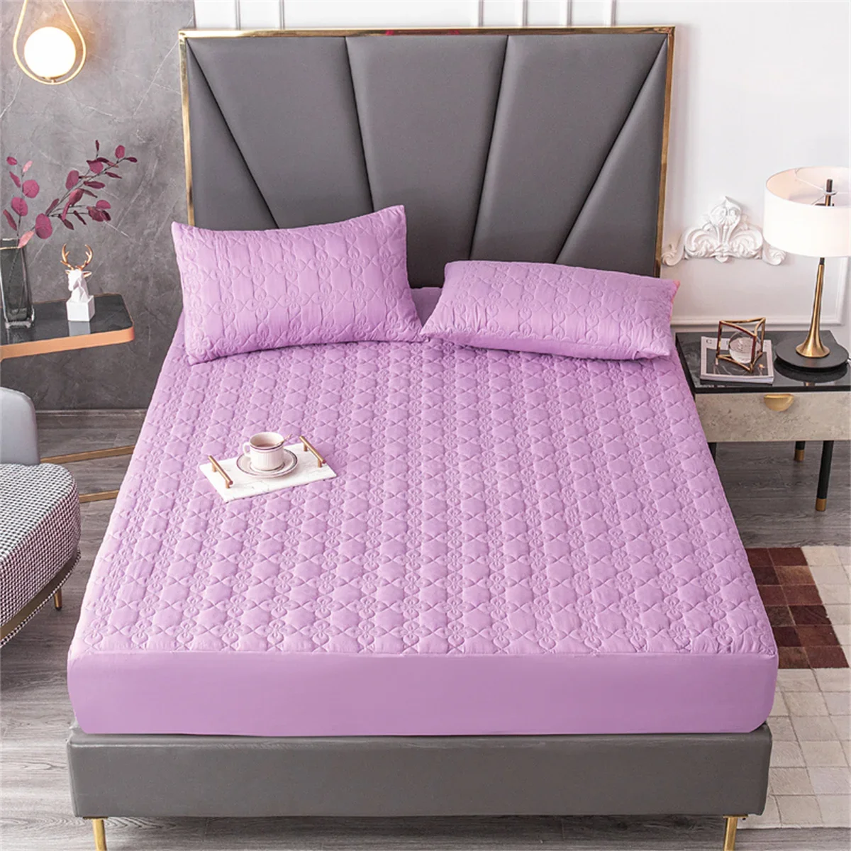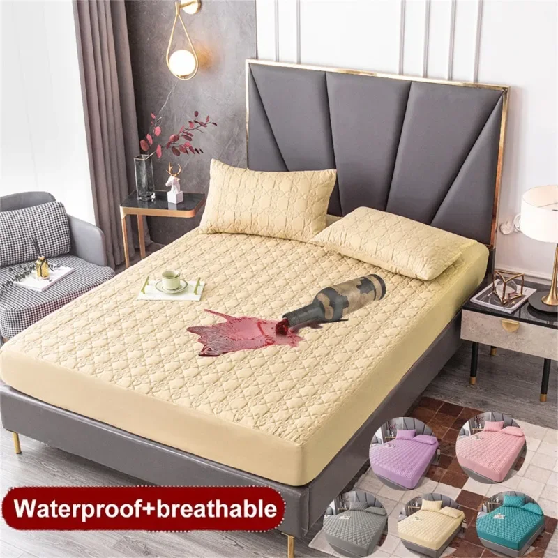 100% Waterproof Quilted Bed Fitted Sheet Soft Breathable Mattress cover Solid Color Queen/King/Twin/Full Size Bedding