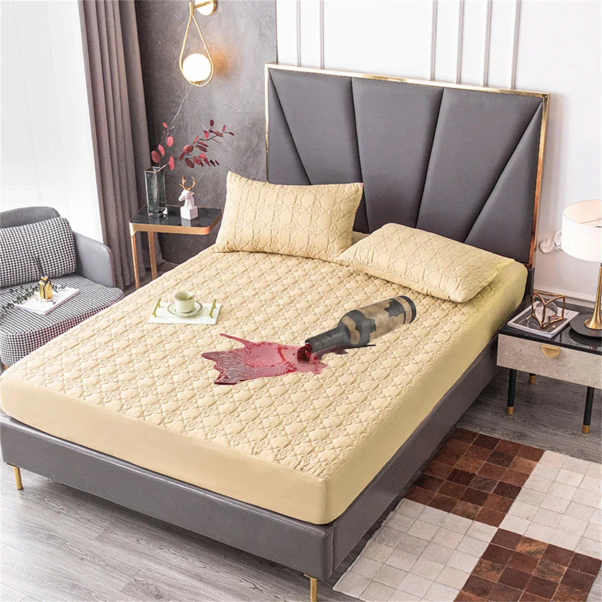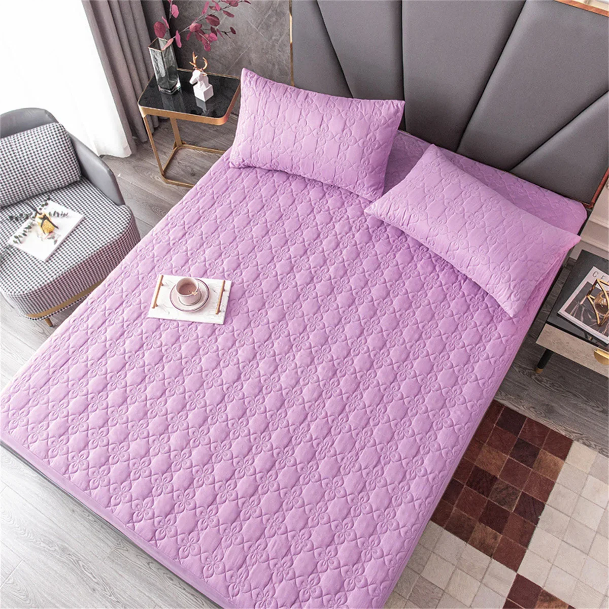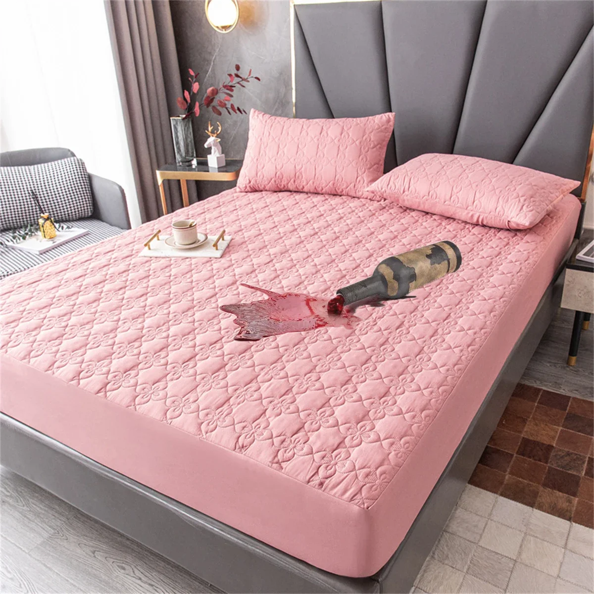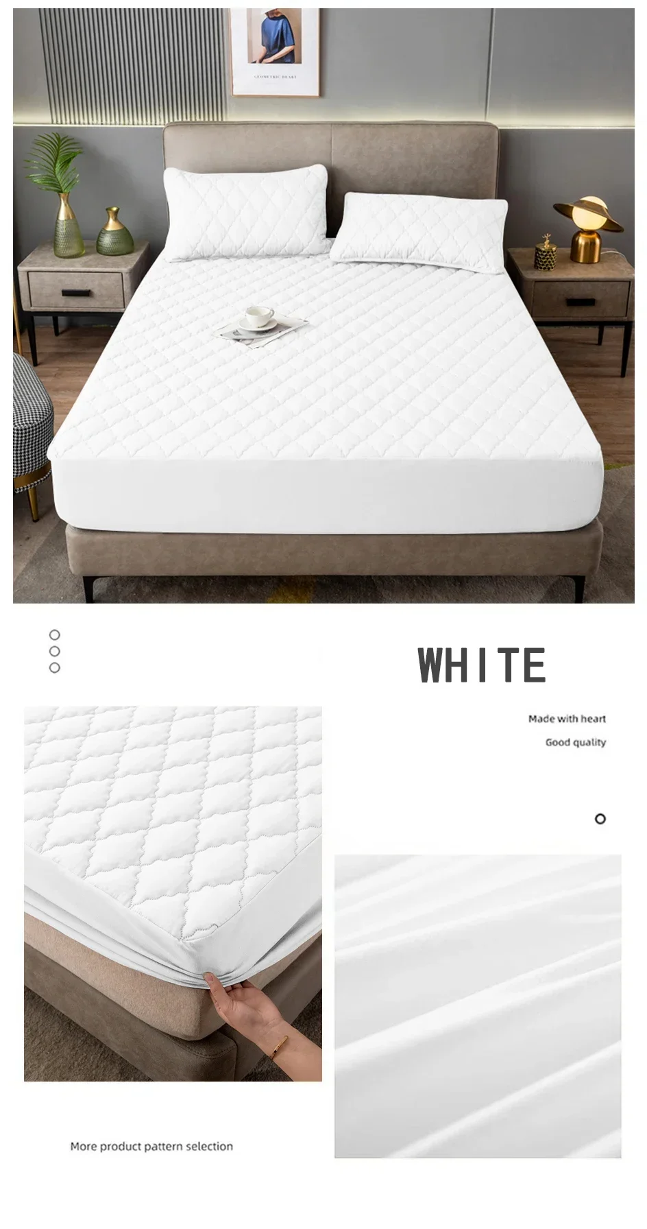 100% Waterproof Quilted Bed Fitted Sheet Soft Breathable Mattress cover Solid Color Queen/King/Twin/Full Size Bedding