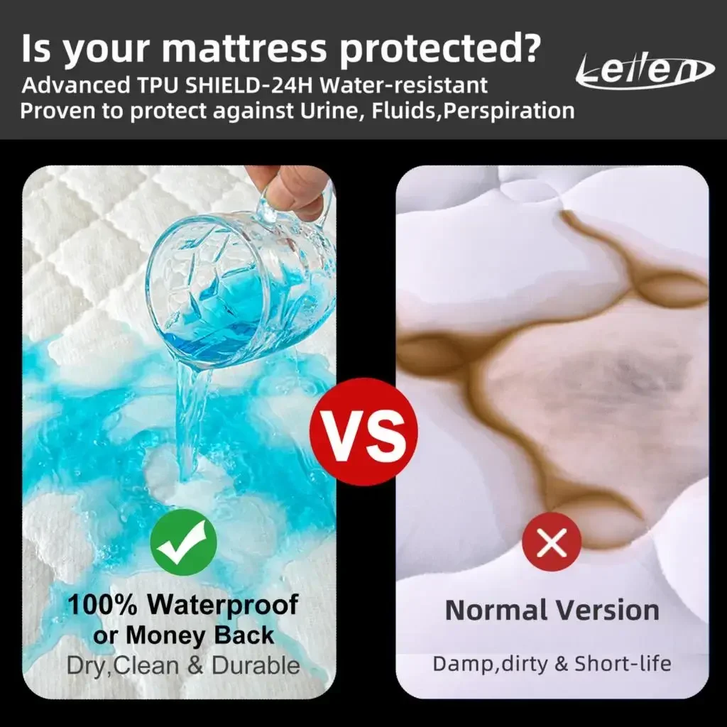 100% WATERPROOF: Our full mattress pad have an upgraded TPU membrane to provide waterproof protection. This layer protects your expensive mattress from body fluids like sweat, urine, and accidental spills. Our full mattress pad waterproof is ideal for elders, periods, pets, bedwetting, etc. No more frustration about accidents happening.