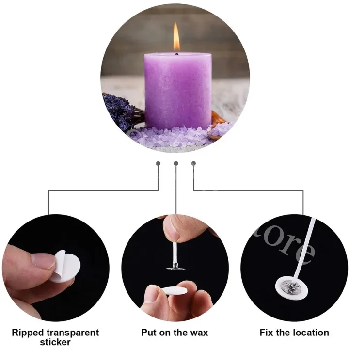 Place them on the bottom of the wick and adhere your wick to the bottom of the jar, put it for two hours and then pour wax water, easy to keep the wick centered, making your DIY candle more convenient and easy.