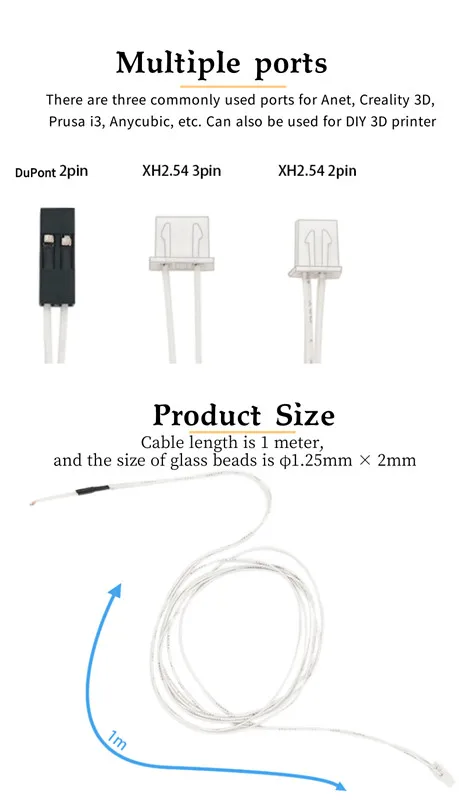 100K Ohm NTC 3950 Thermistor Sensor XH2.54 Dupont 3D Printer Parts For Reprap Mend Part Temperature 3D Printer Accessories
