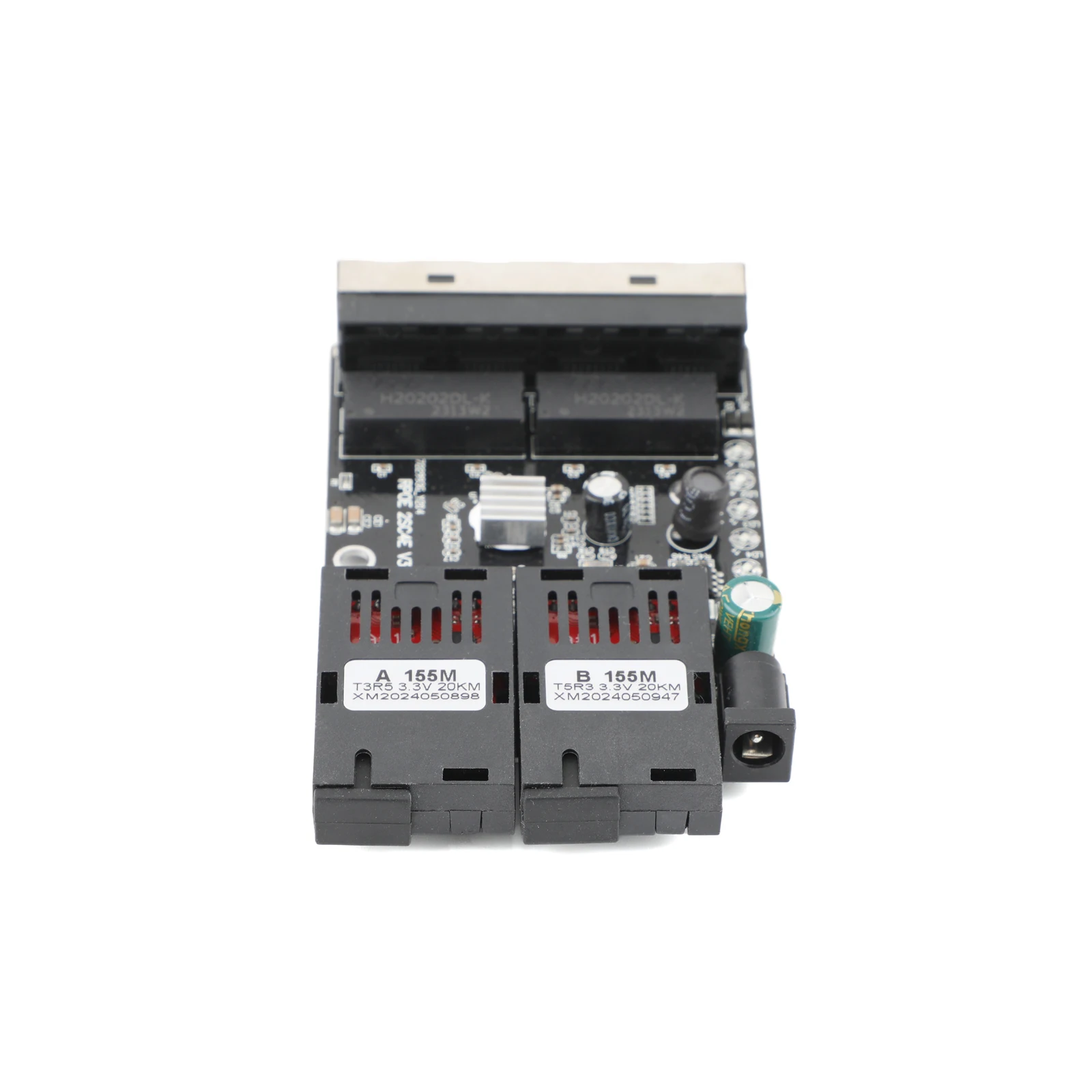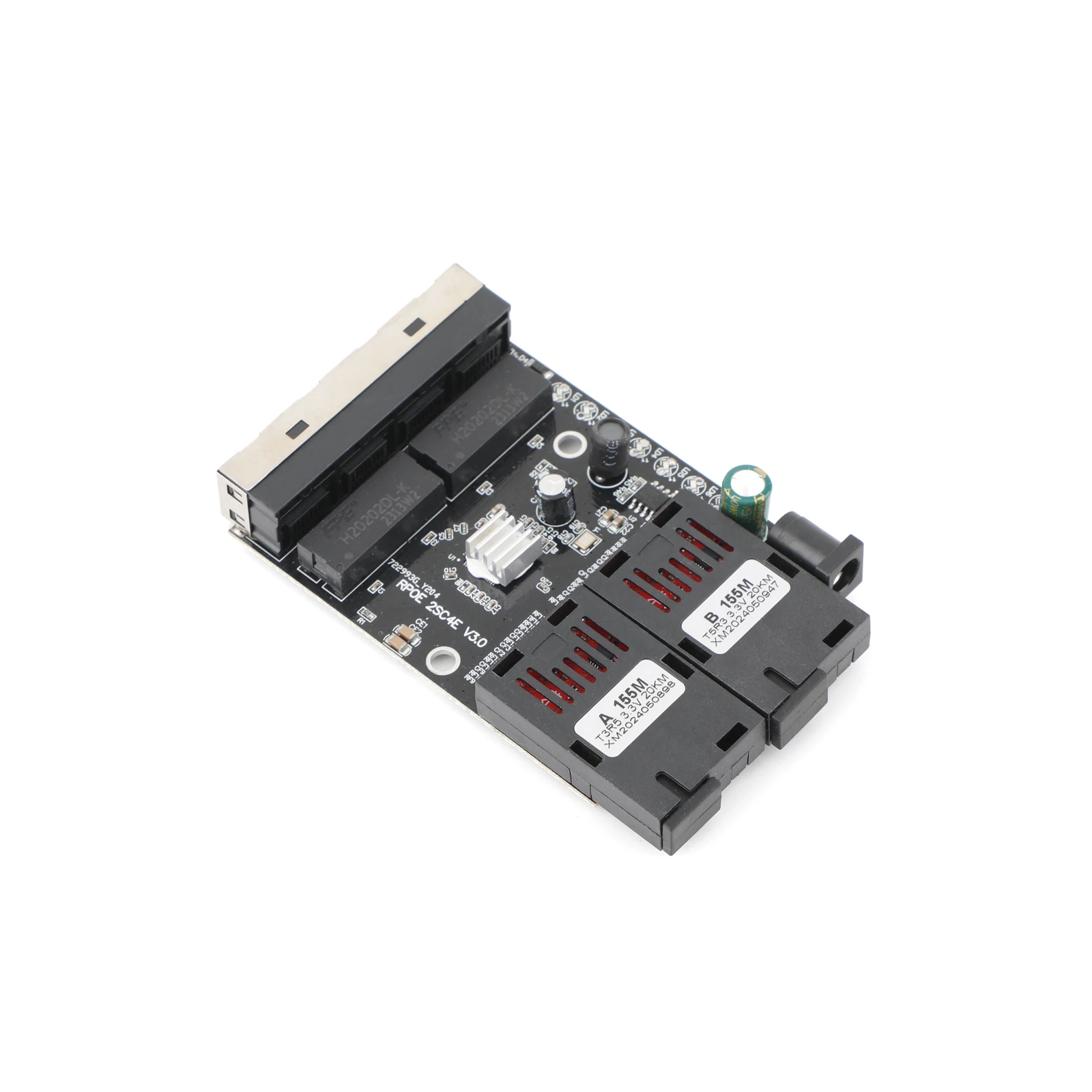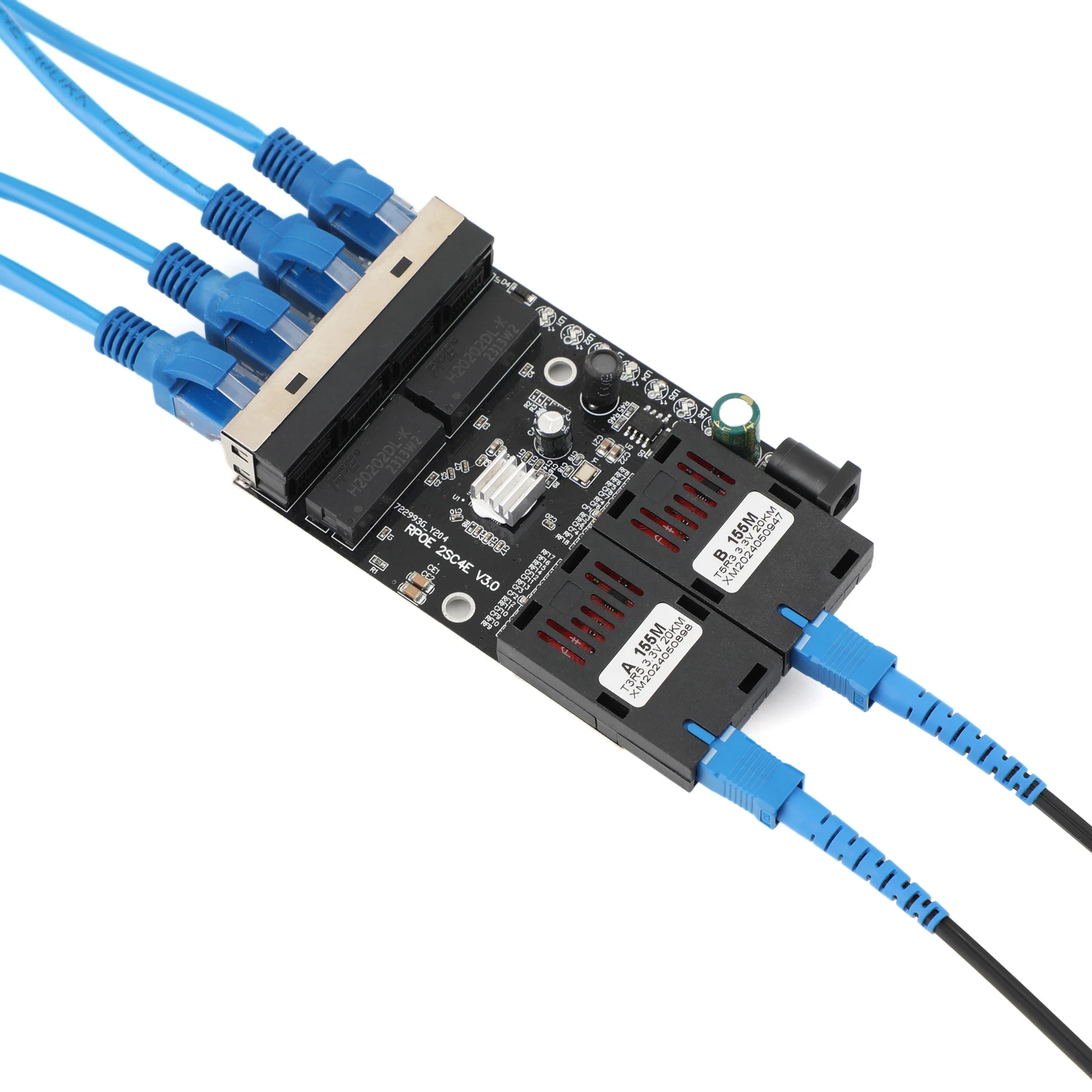 100M Fiber Optic Media Converter 4 RJ45 to 2 SC A+B Optic Connector 1310nm/1550nm Ports PCBA Board 20KM Ethernet Switch Black