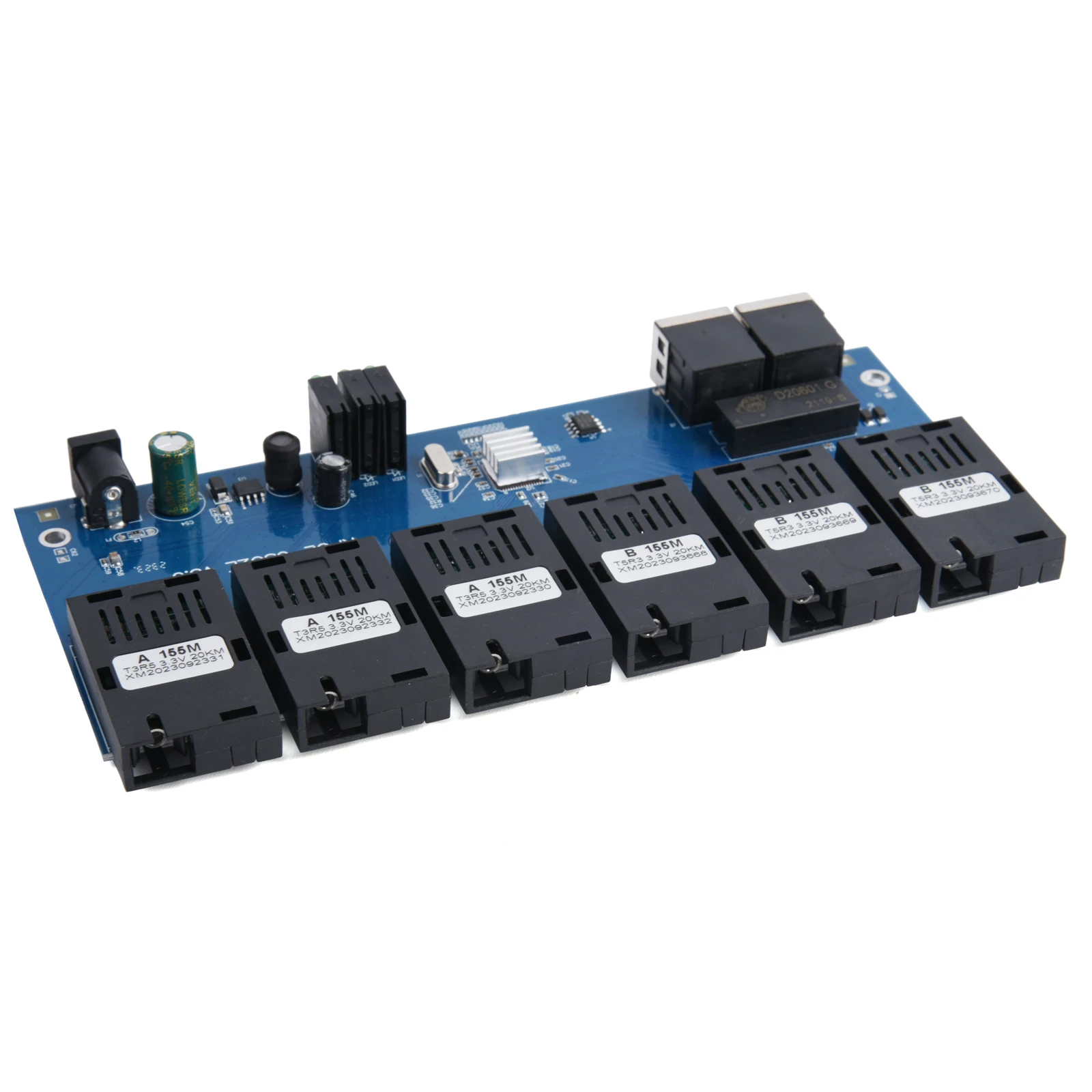 20KM Ethernet Switch 10M/100M PCBA Board Fiber Optic Media Converter 2 RJ45 to 6 SC Optic Connector 1310nm/1550nm 3A+3B Ports