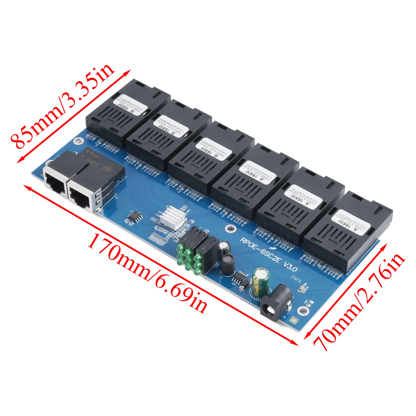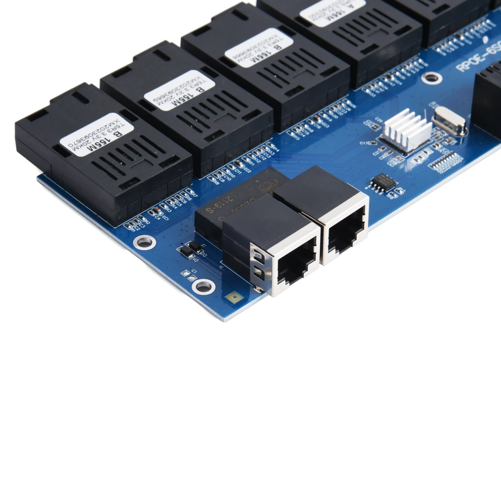 100M PCBA Board Fiber Optic Media Converter 2 RJ45 to 6 SC Optic Connector 1310nm/1550nm 3A+3B Ports 20KM Ethernet POE Switch