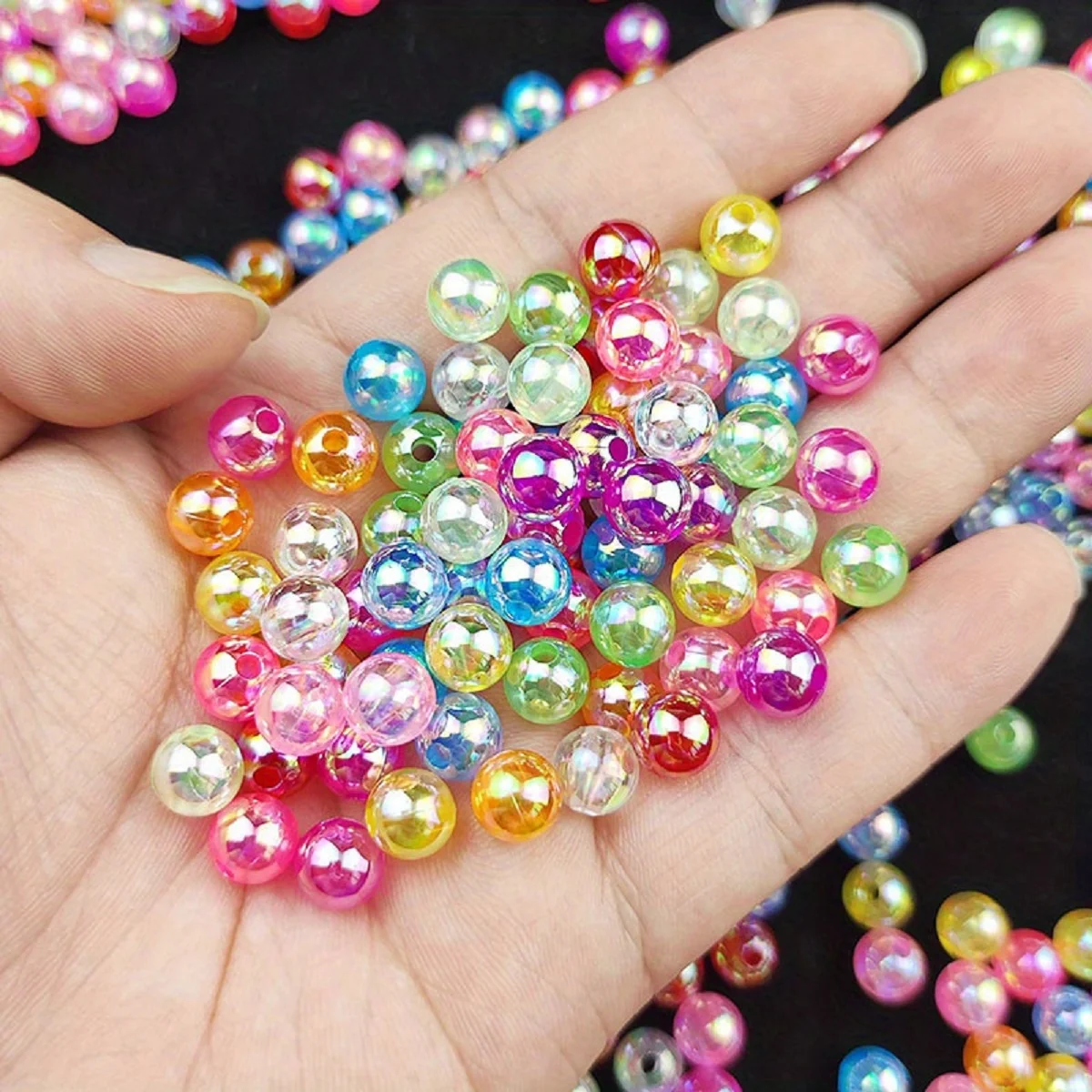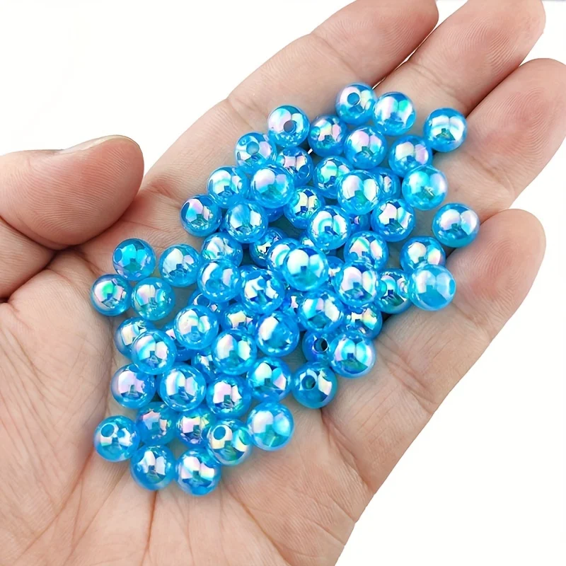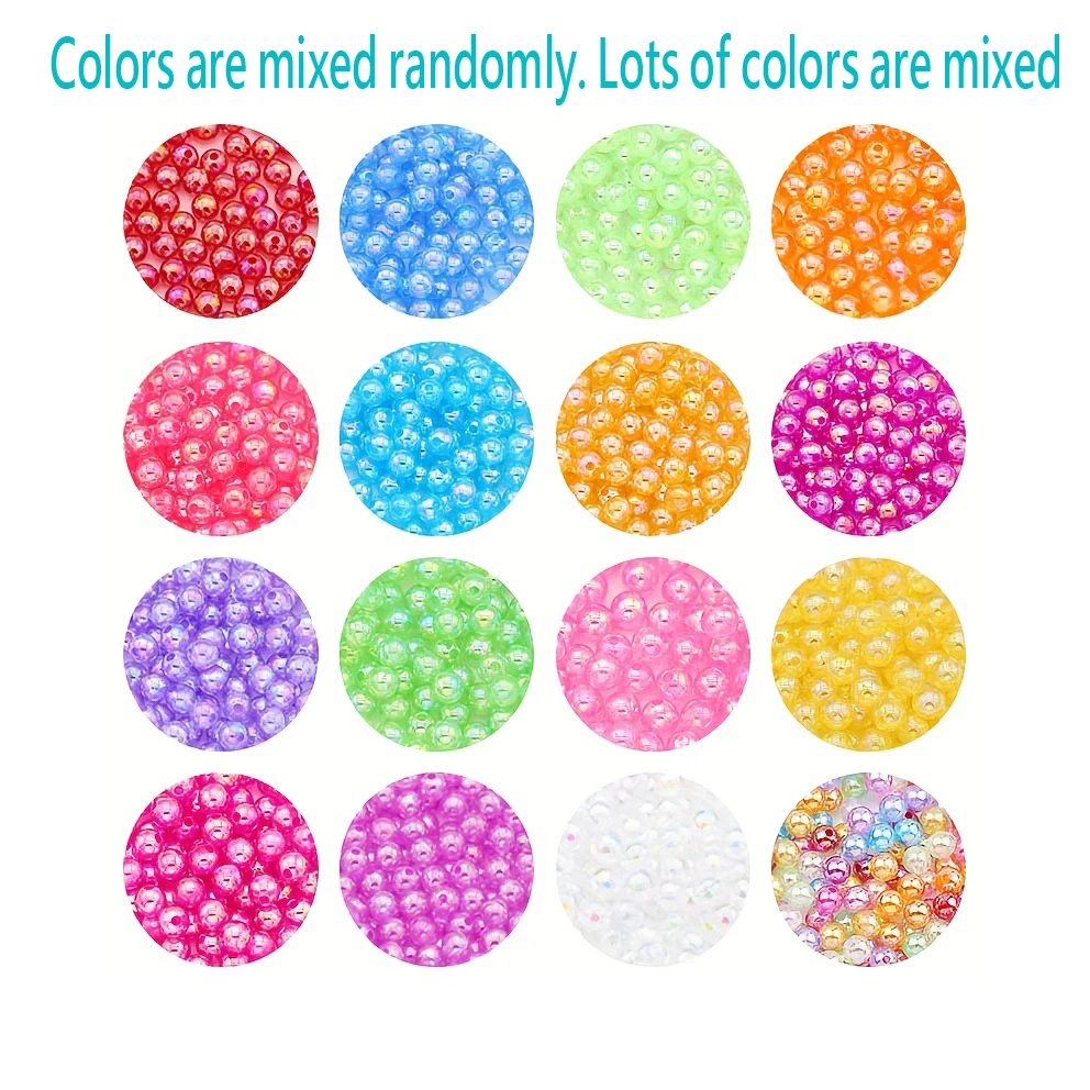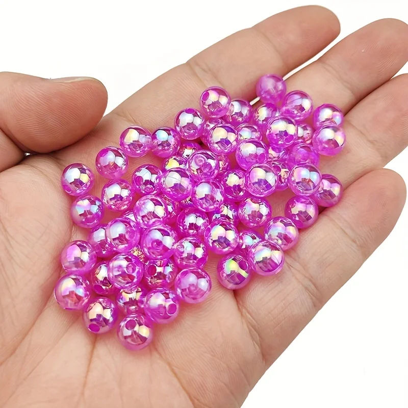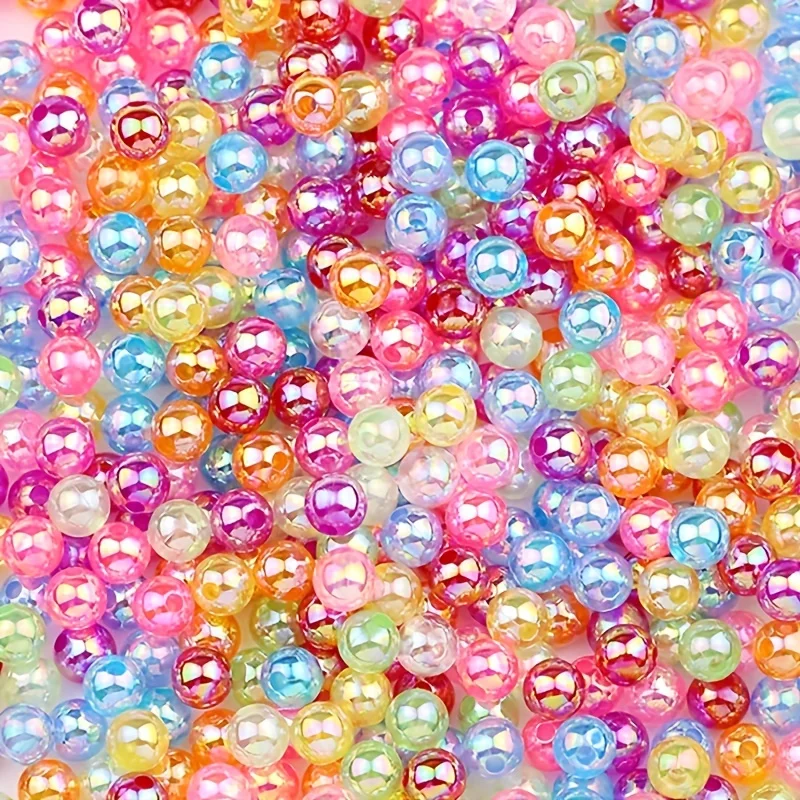 100pcs 6/8/10mm Acrylic Imitation Pearl Beads、 Random Mixed Color、AB Color 、with Hole Loose Bead Diy Handmade Jewelry Material