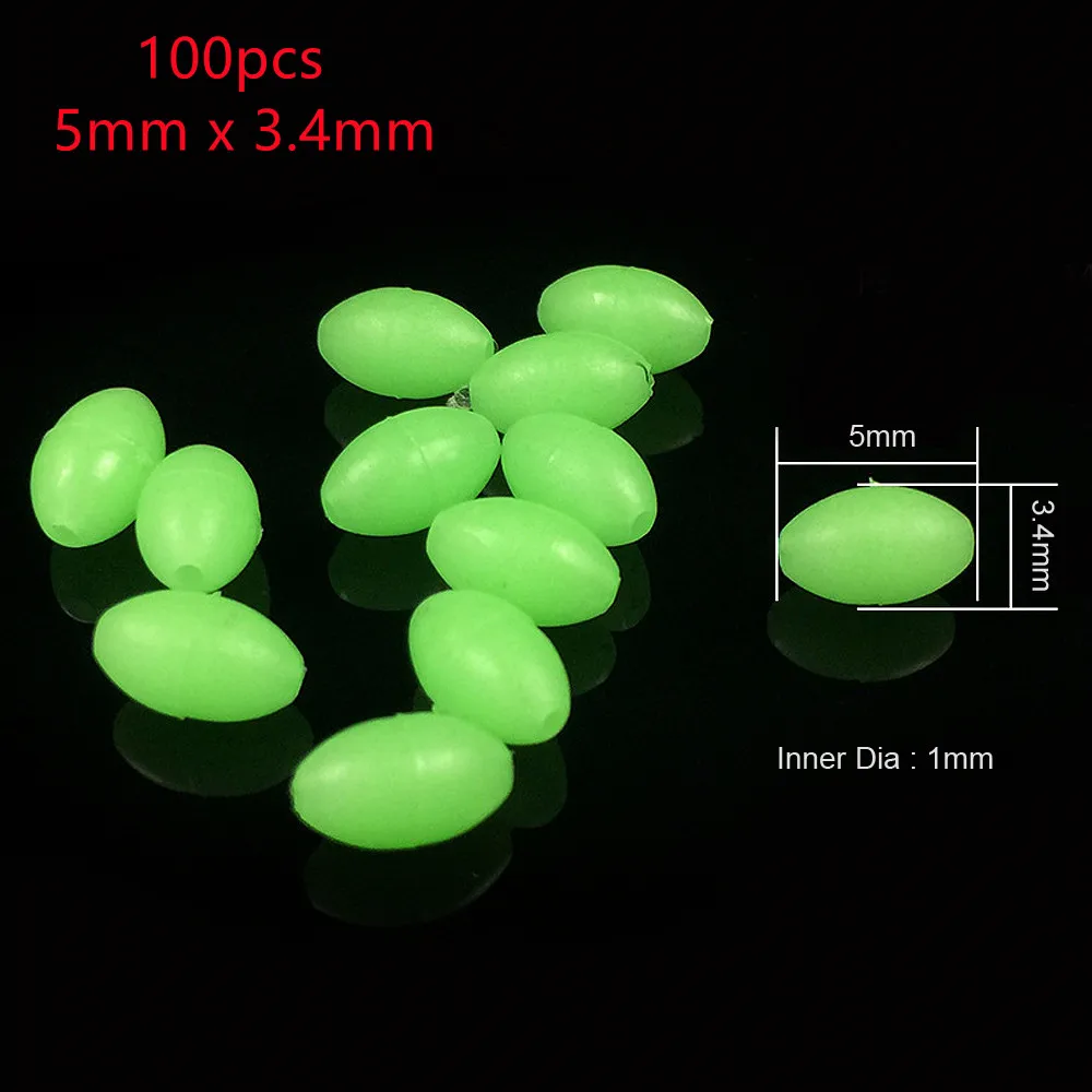 100pcs Oval Night Luminous Fishing Beads Glowing Sea Fishing Lure Bait Floating Beads Fishing Tackles Tools For Rig 5mm 8mm