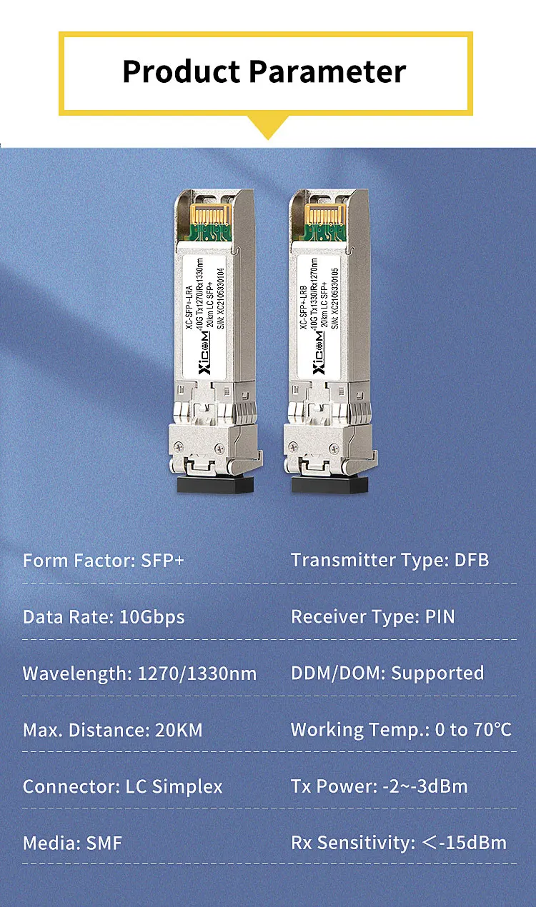 10G SFP+ Optical Fiber Module 20km LC Simplex Fiber SFP Module Singlemode with Cisco/Mikrotik/Huawei Switch Full Compatible