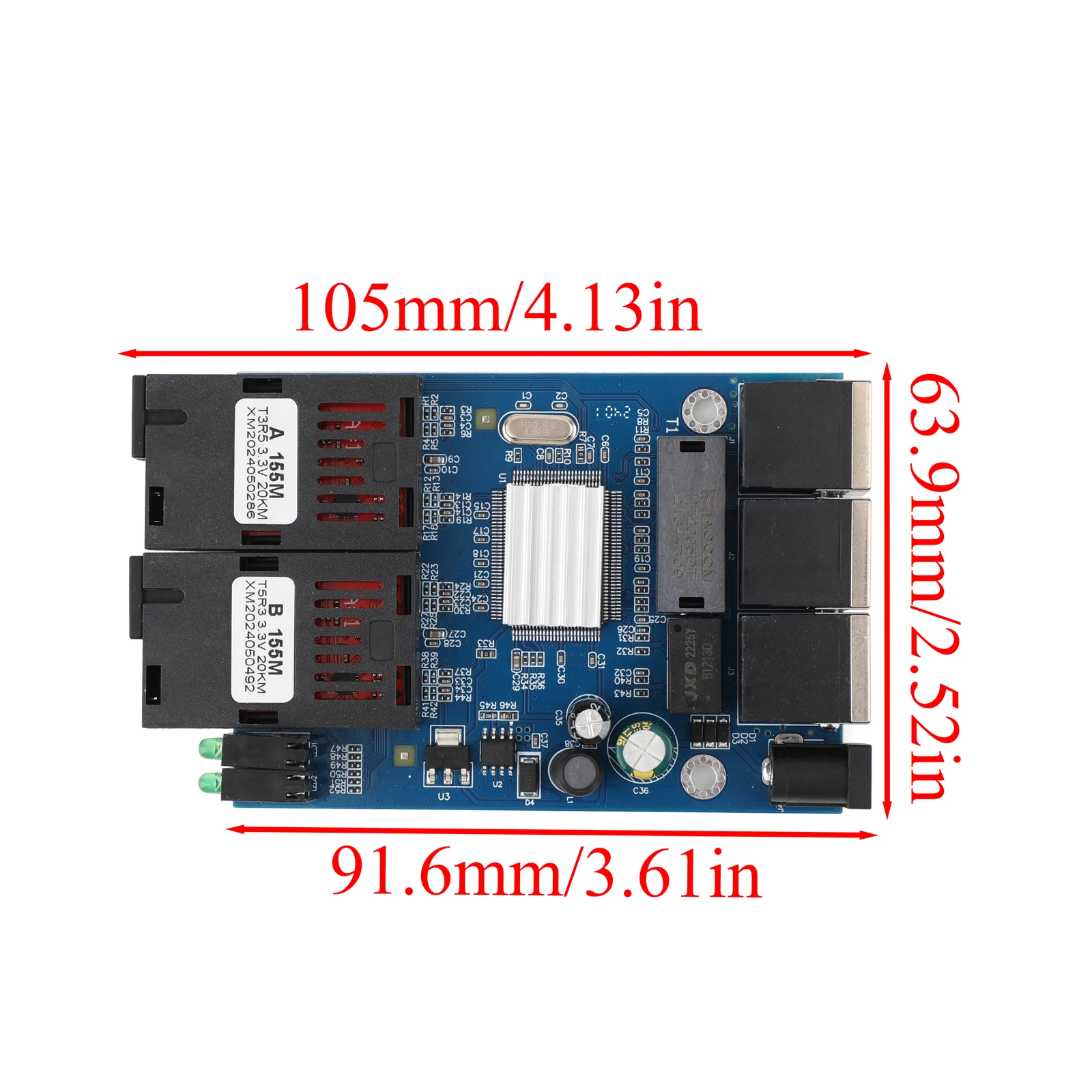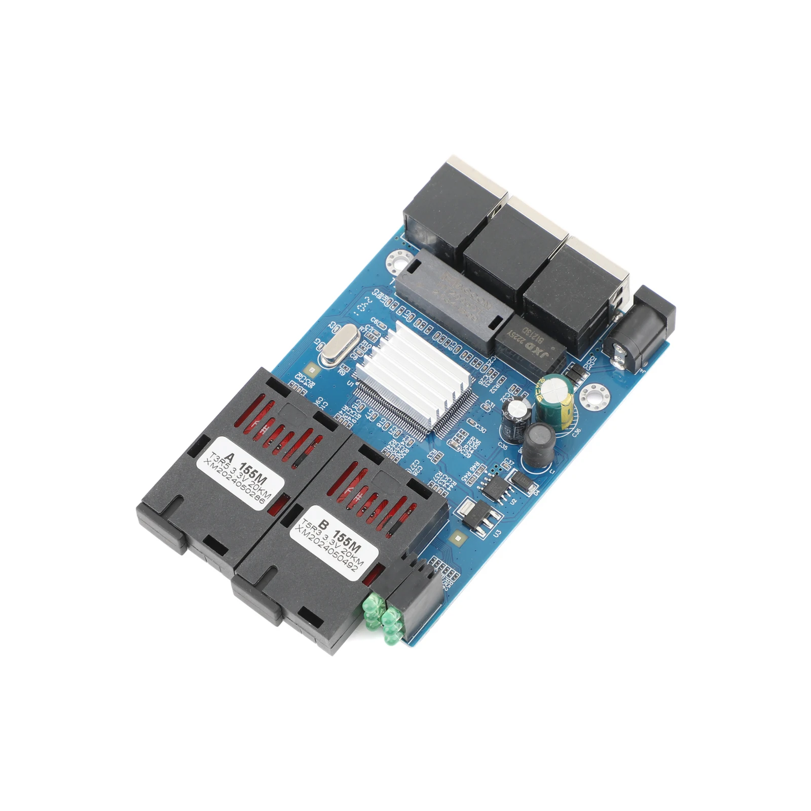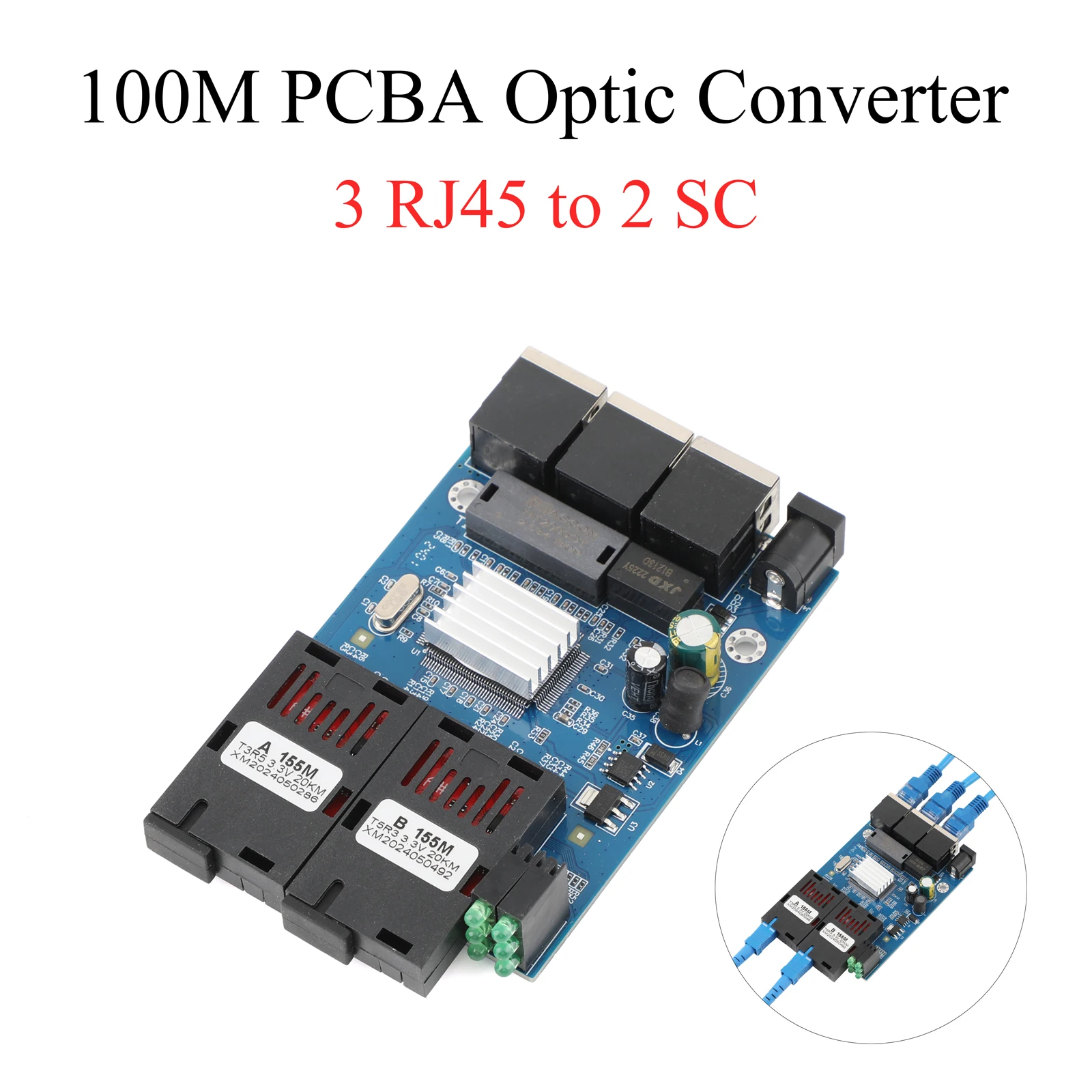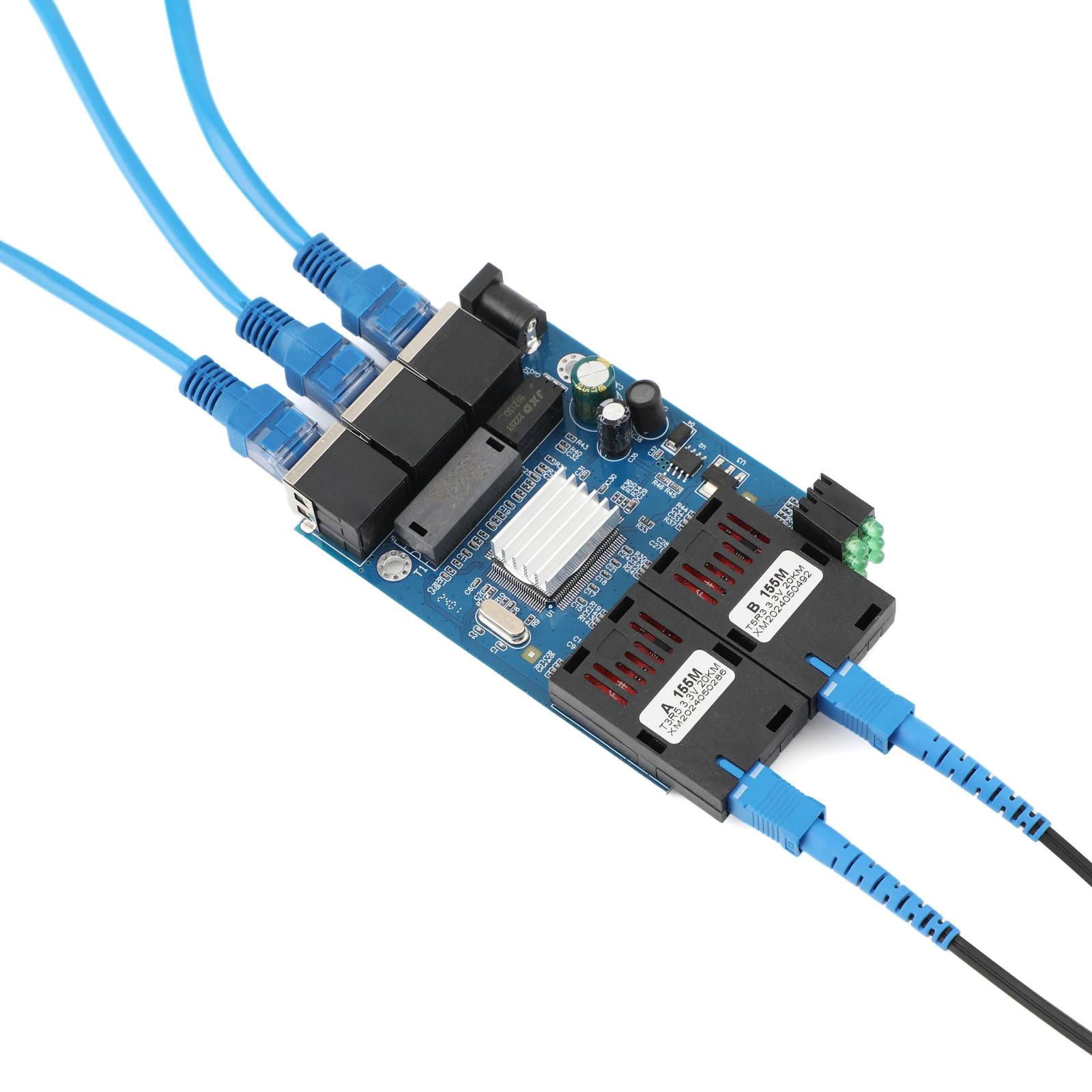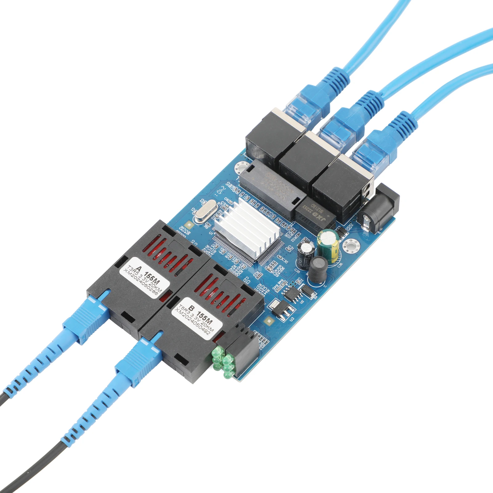 10M/100M Fiber Optic Media Converter 2 SC to 3 RJ45 A+B Optic Connector 1310nm/1550nm Ports PCBA Board 20KM Ethernet Switch