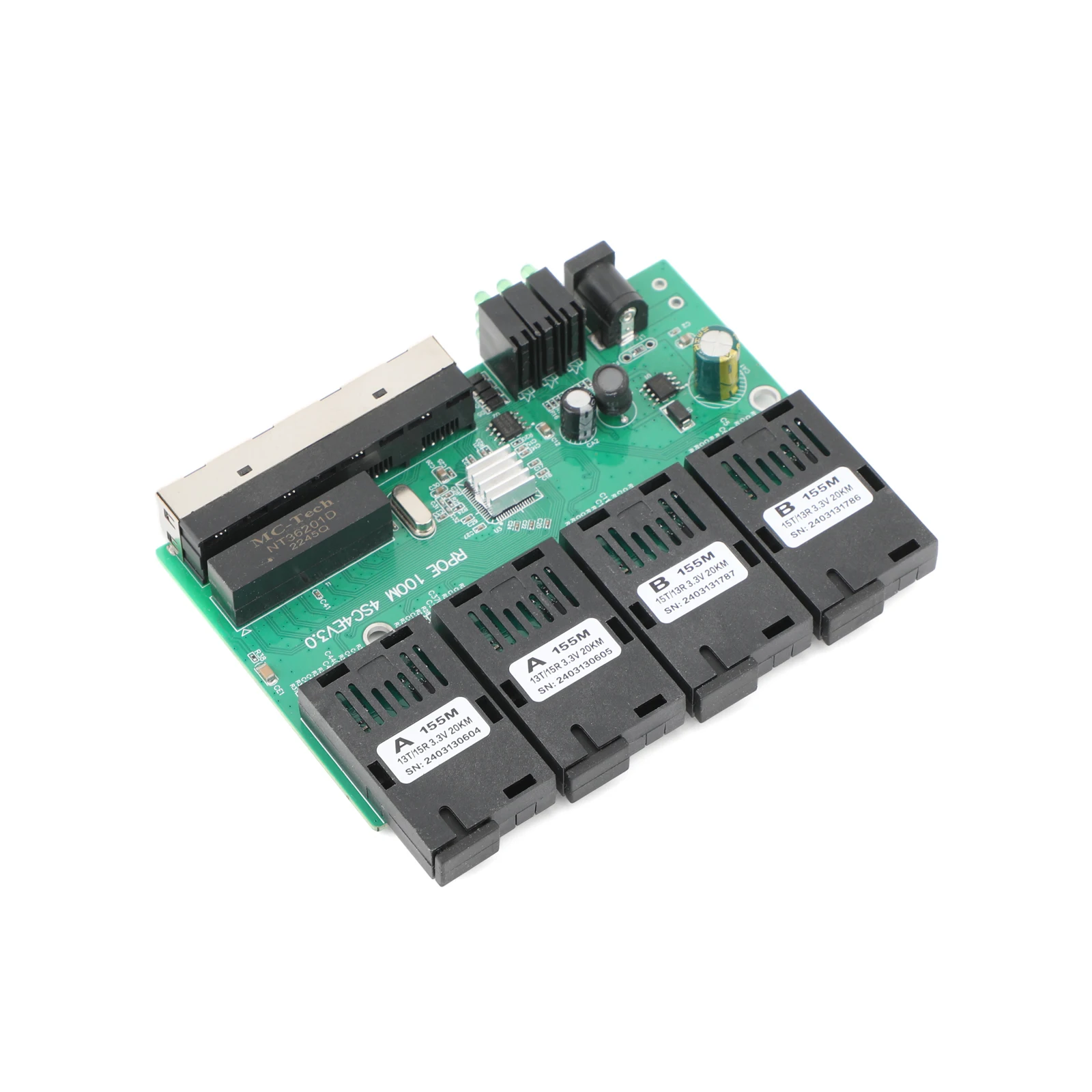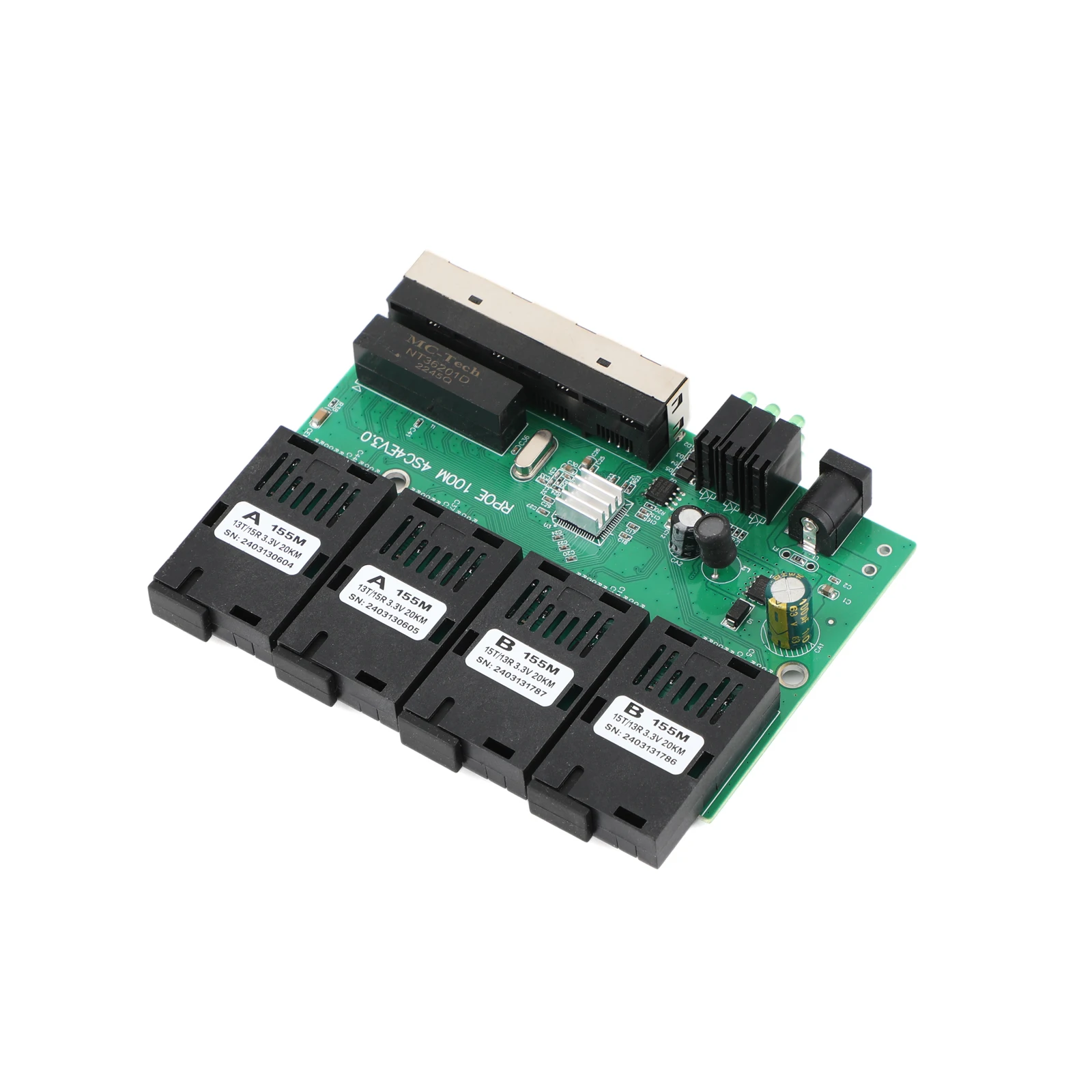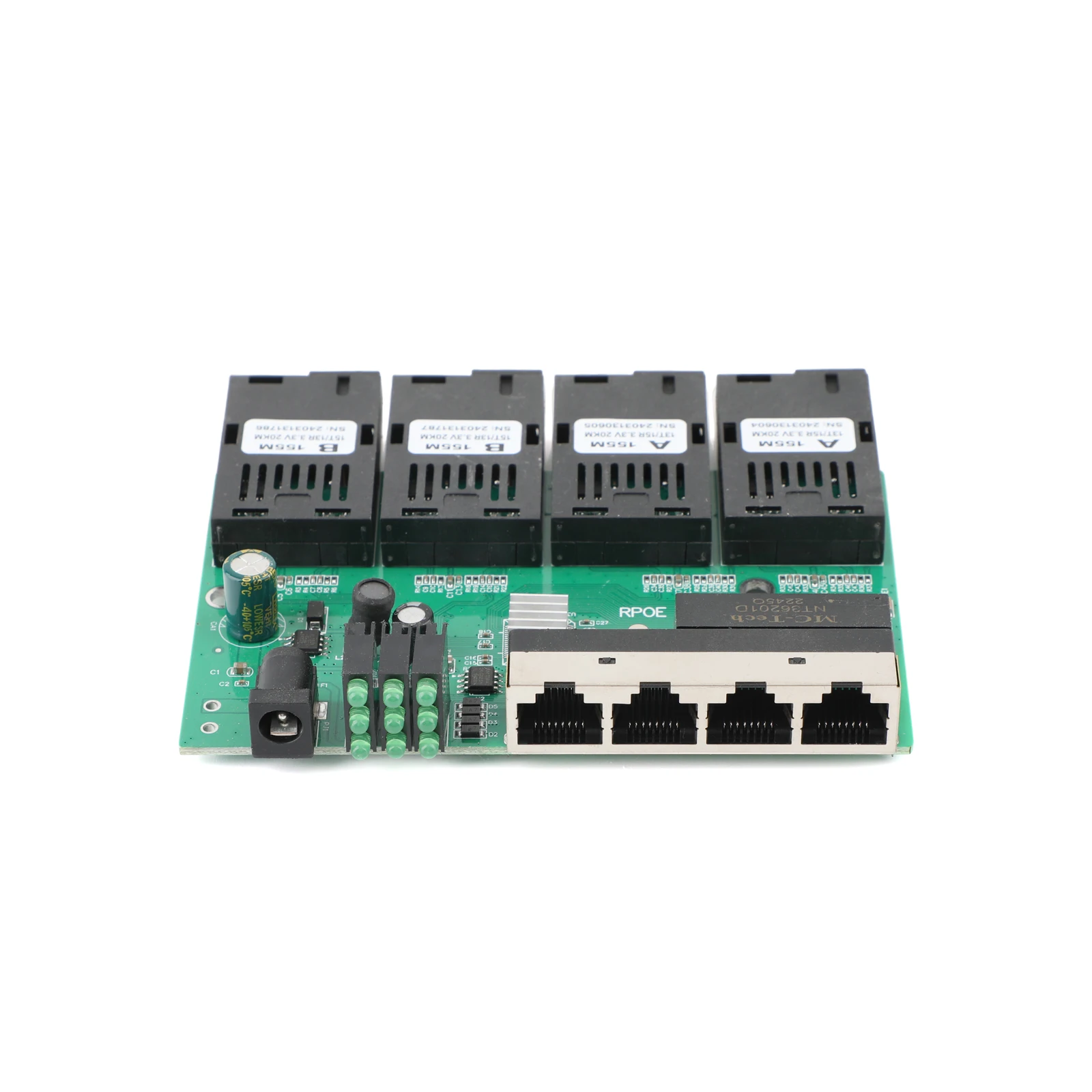 10M/100M PCBA Board Optic Media Converter 4RJ45 to 4SC 2A+2B Fiber Optic Connector 1310nm/1550nm Ports 20KM Ethernet POE Switch