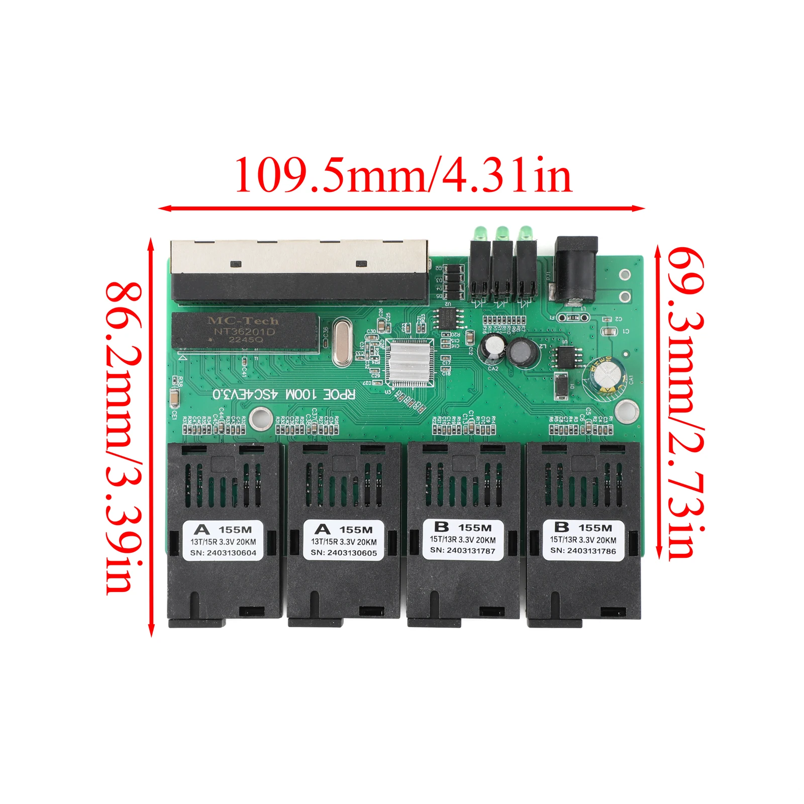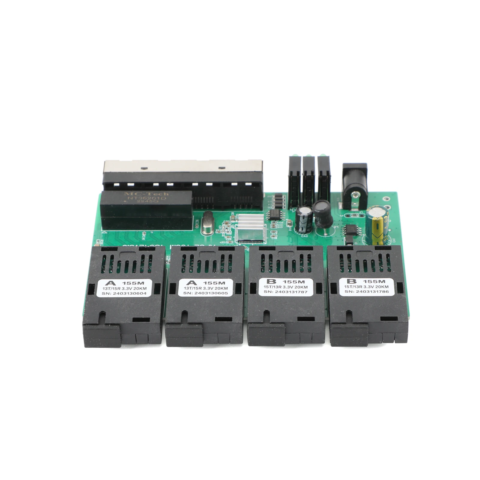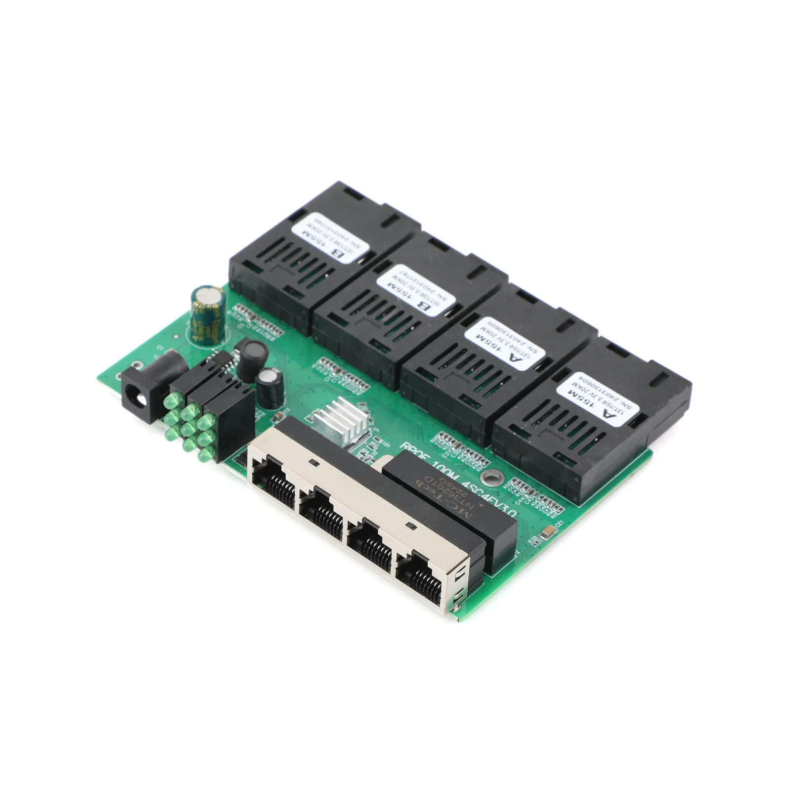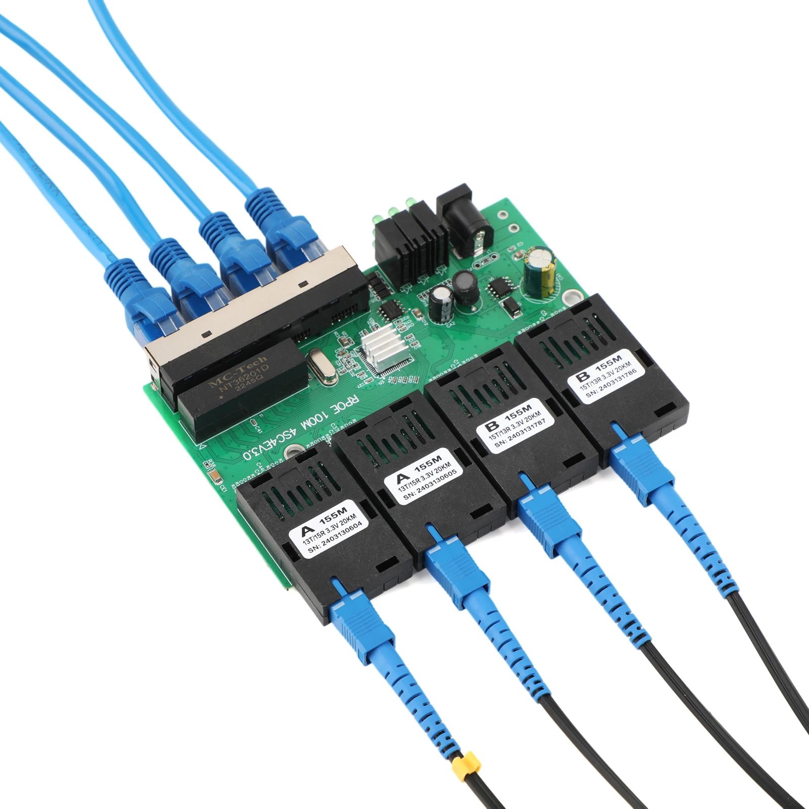 10M/100M PCBA Board Optic Media Converter 4RJ45 to 4SC 2A+2B Fiber Optic Connector 1310nm/1550nm Ports 20KM Ethernet POE Switch