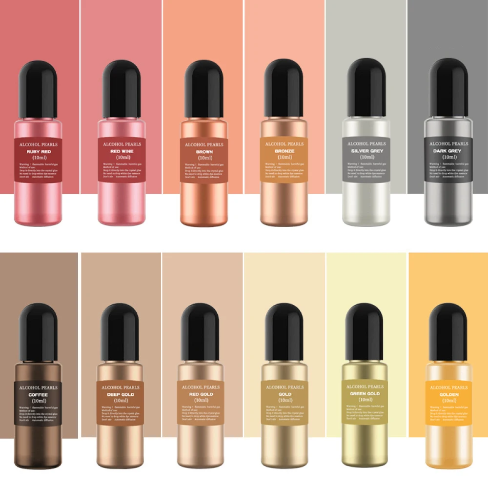 10ml Metal Resin Pigment Art Ink Alcohol Liquid Colorant Dye 3D Ink Diffusion DIY Epoxy Resin Mold Jewelry Making Accessories