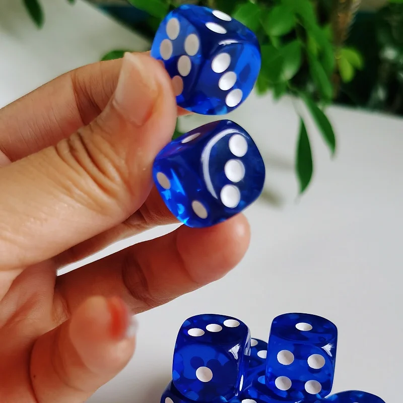 10pc/lot D6 Dice Acrylic 6 Faces Dice Casino Table Game Dice transparent blue color 16mm Casino Dice Toys