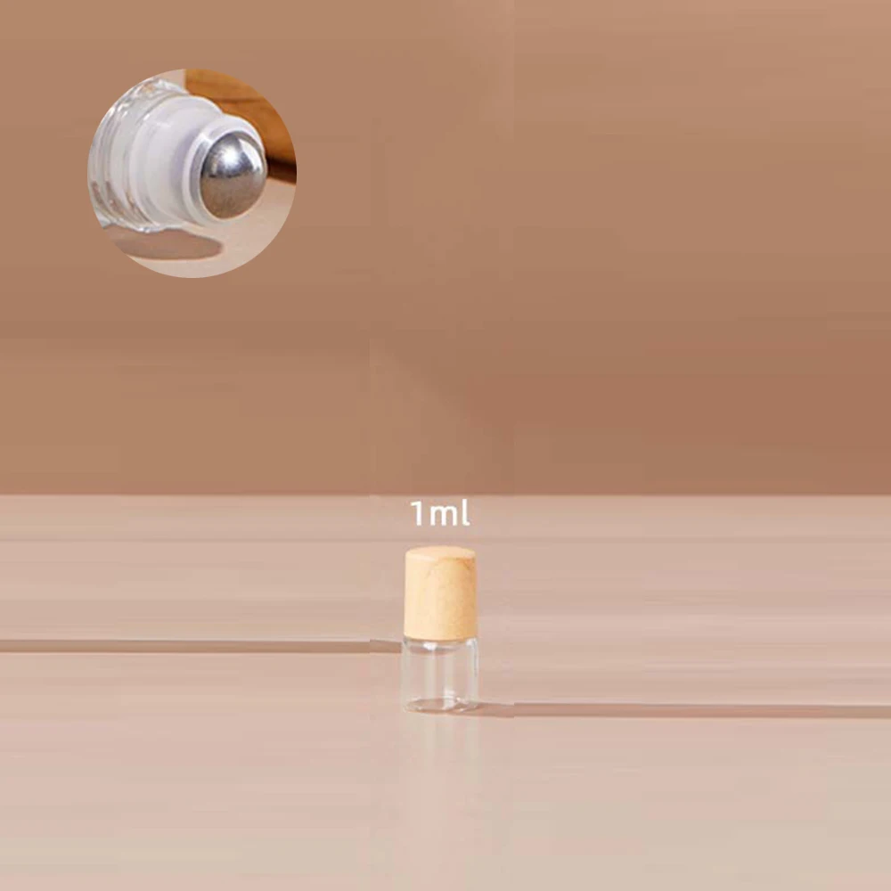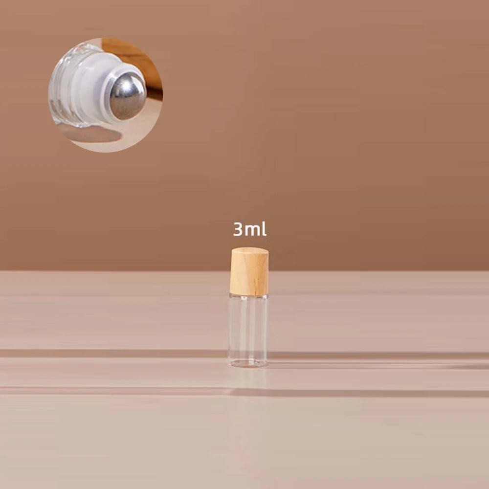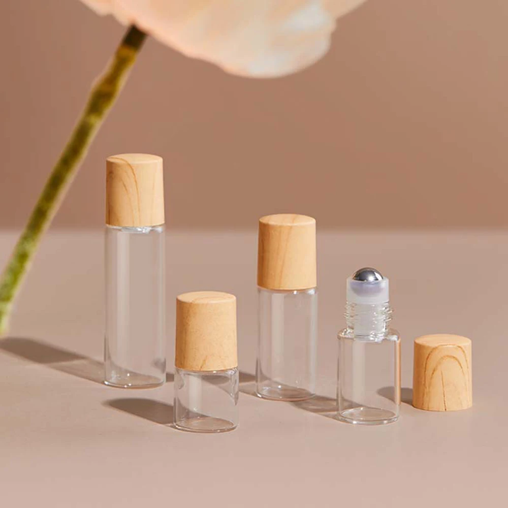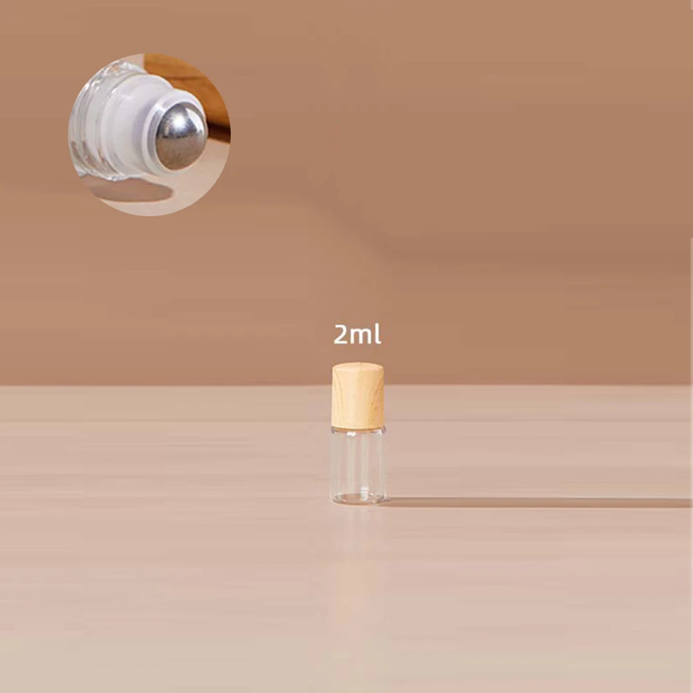 10pcs 1/2/3/5ml Frosted Glass Roller Bottle Wood Grain Plastic Cap for Essential Oils Roll-on Bottle with Steel Roller Ball