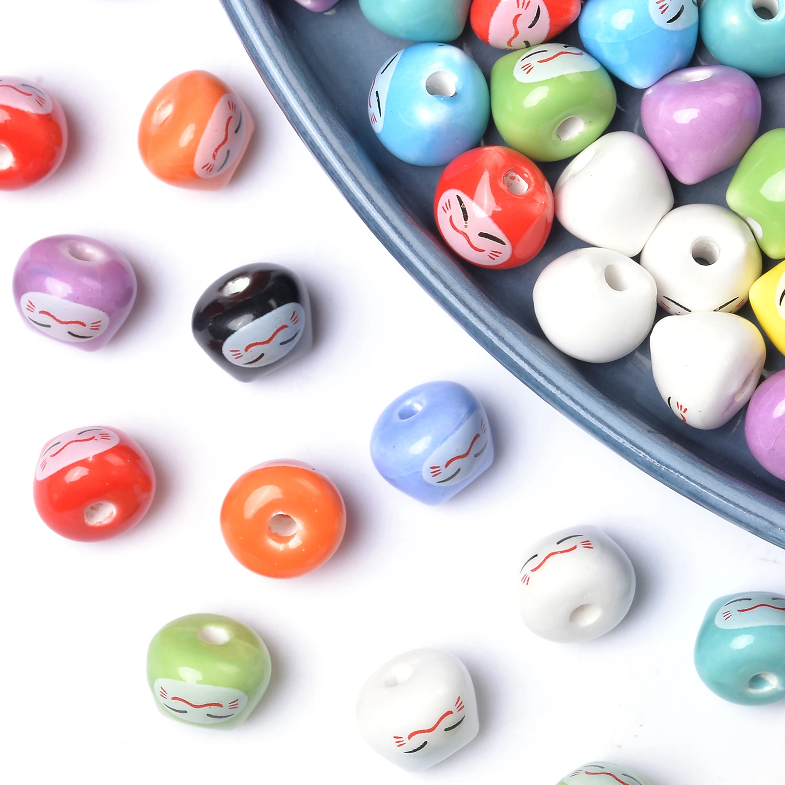 10pcs Cute Cat Ceramic Beads For Jewelry Making DIY Bracelet Necklace Colorful Procelain Beads Jewelry Accessories