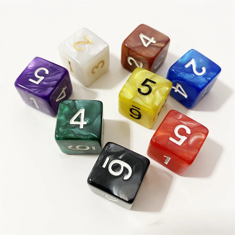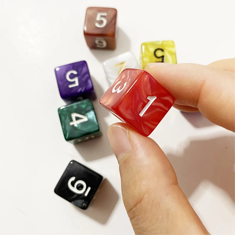 10PCS D6 Drink Digital Marble Dice Set for Funny Party Club Pub Board Playing Game Accessory 8 Colors 15mm