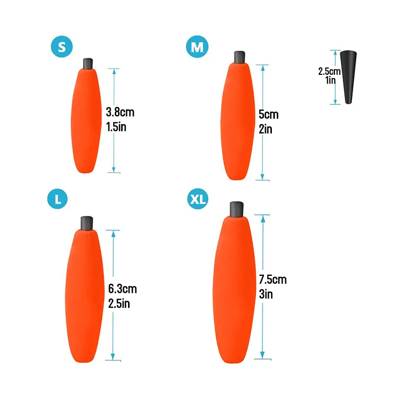 Size: 1.5in,2in,2.5in,3in, four sizes of four colors peg floats, strike indicator with plastic tubing, perfect size to drift small lures or bait.