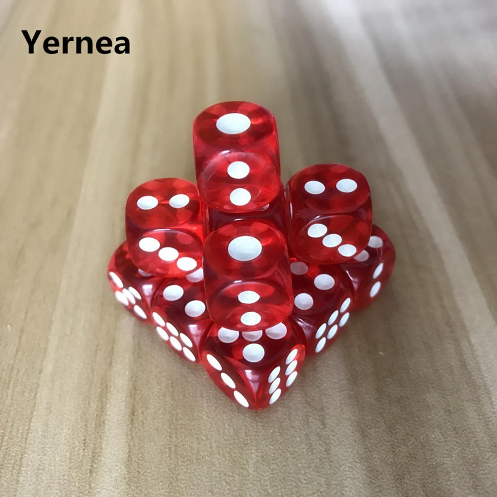 10Pcs/Lot Quality 12mm Acrylic Transparent Red Dice White Point Dice Hexahedron Fillet Entertainment Bar KTV Dice Set Board Game