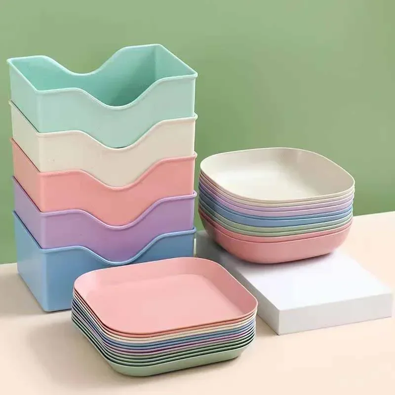10Pcs Multi-function Color RandomSpit Bone Dish Household Food Grade Plastic Spit Bone Dish Round Square Set Dining Table Garbag