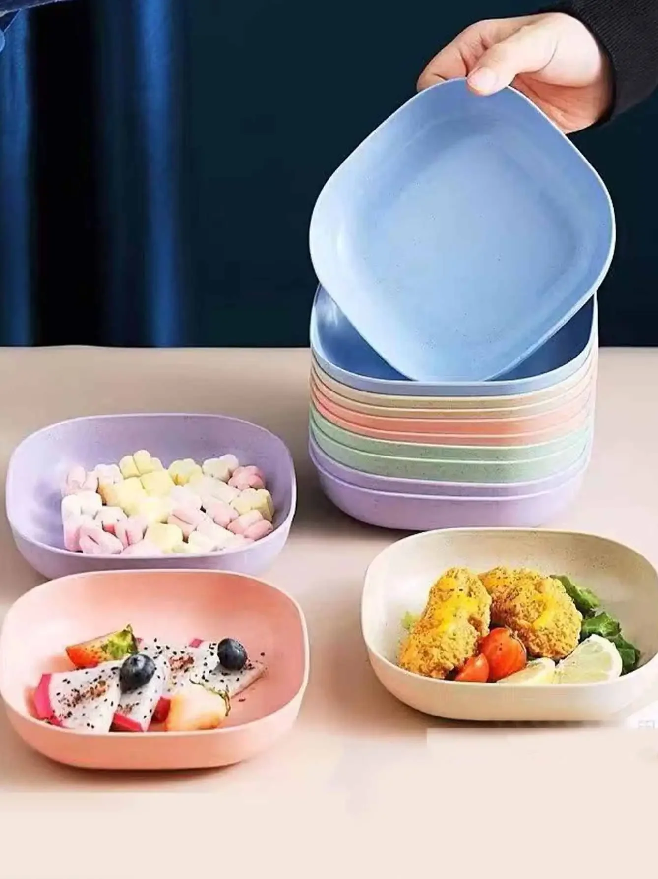 10Pcs Multi-function Color RandomSpit Bone Dish Household Food Grade Plastic Spit Bone Dish Round Square Set Dining Table Garbag