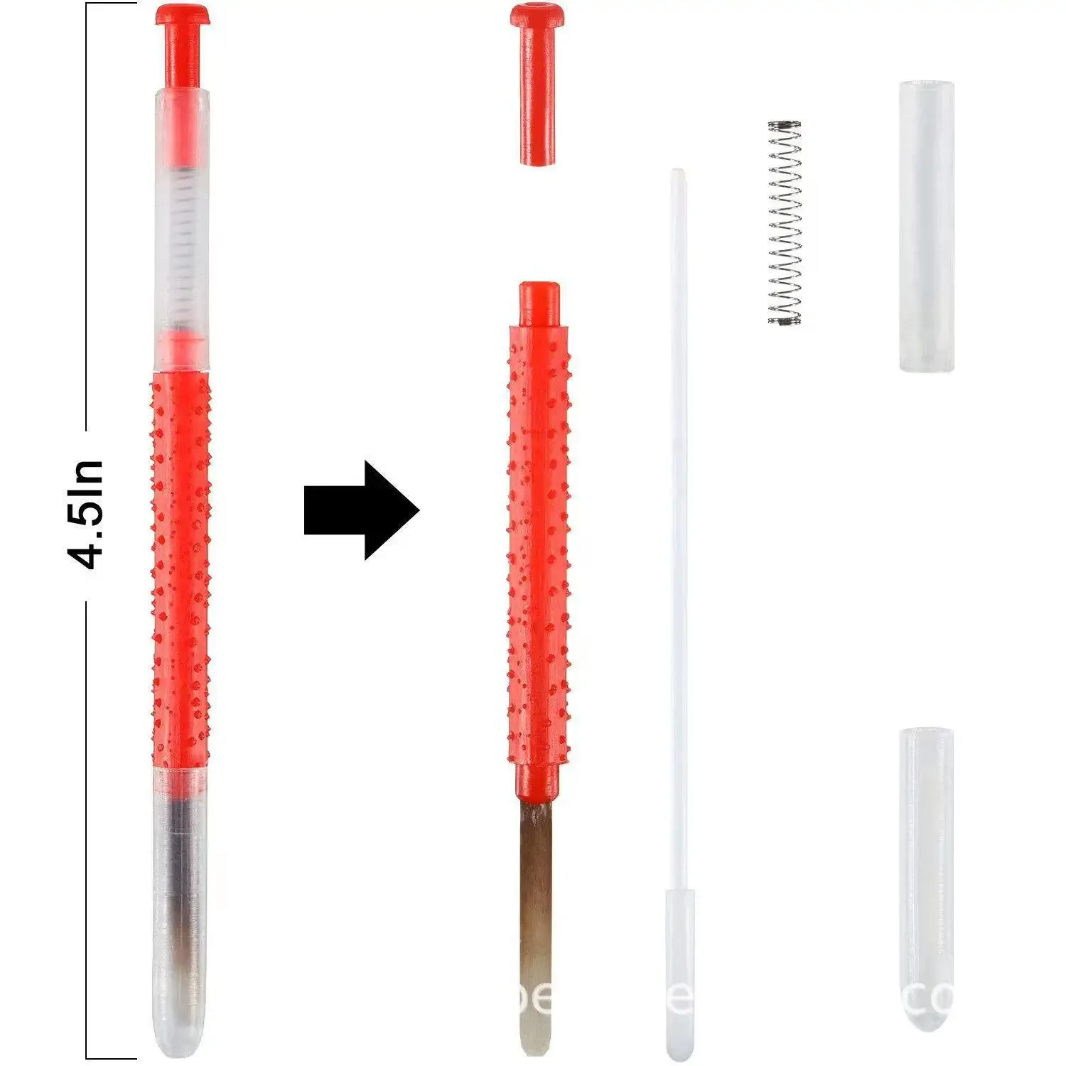 These grafting tools have a spring-loaded plunger used to gently push the larva off of the reed and into the cup.