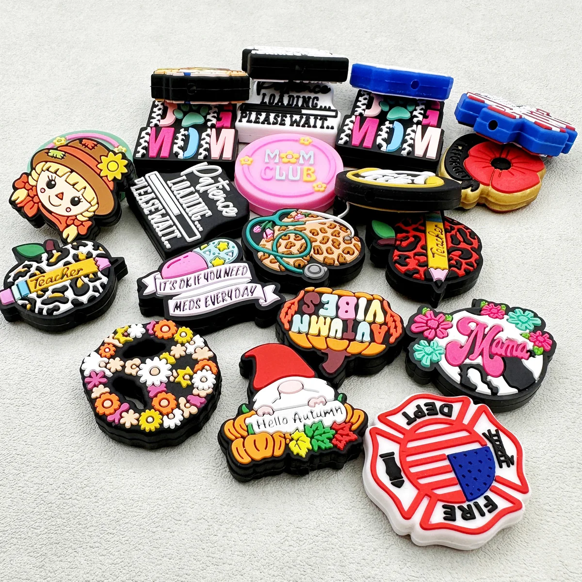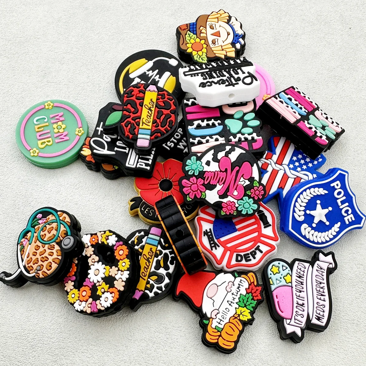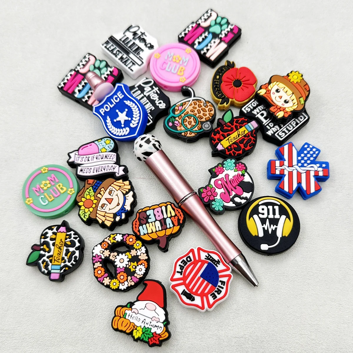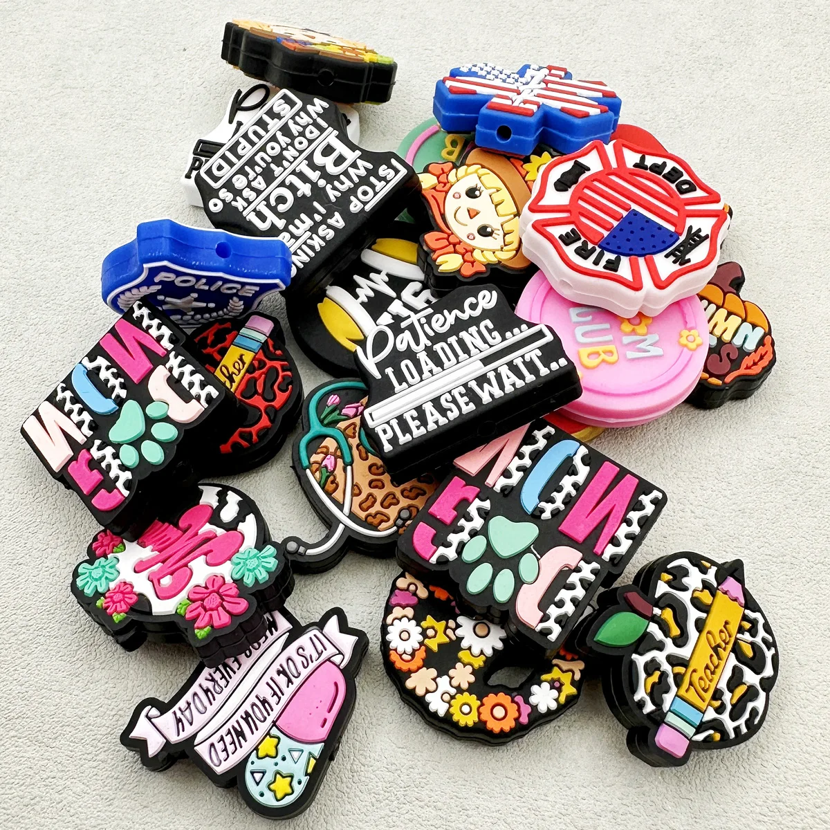 10pcs Silicone Beads Wholesale cartoon Summer Police Sign Focal Silicone Beads DIY Pen Nipple Chain Jewelry Accessories Gifts