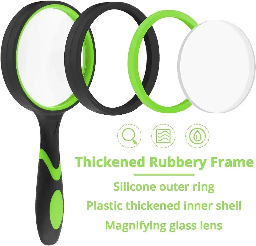 ● NON-SLIP RUBBER GRIP — Made of soft non-slip rubber, easy to carry and comfortable to hold. Rubber rim protects the glass lens from damage.
