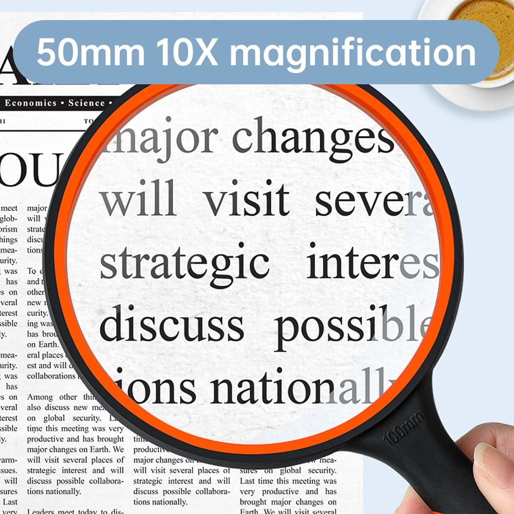 10X Handheld Magnifying Glass for Kids Seniors Reading 50mm Magnifier Nature Exploration Non-Slip Shatterproof Magnifying Lens