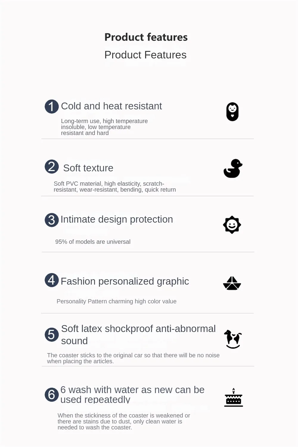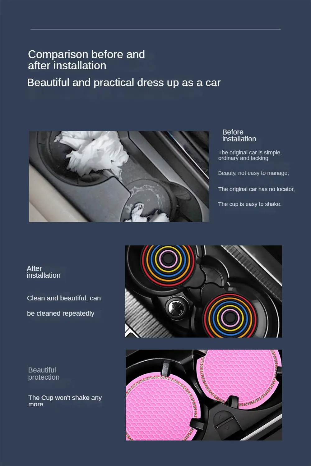 5. Thickened base, effective heat insulation, shock absorption and anti-skid, prevent the driving cup from shaking and rubbing the car body, heat insulation, shock absorption and anti-skid