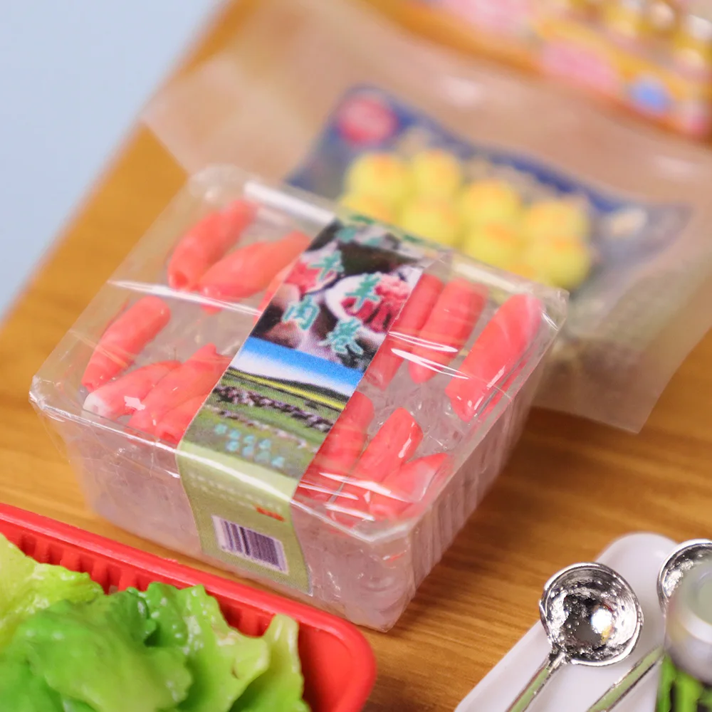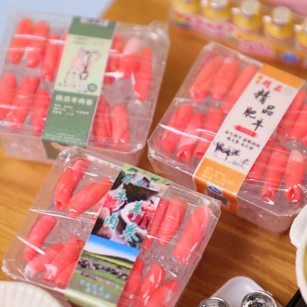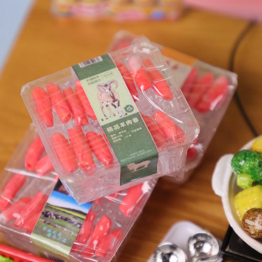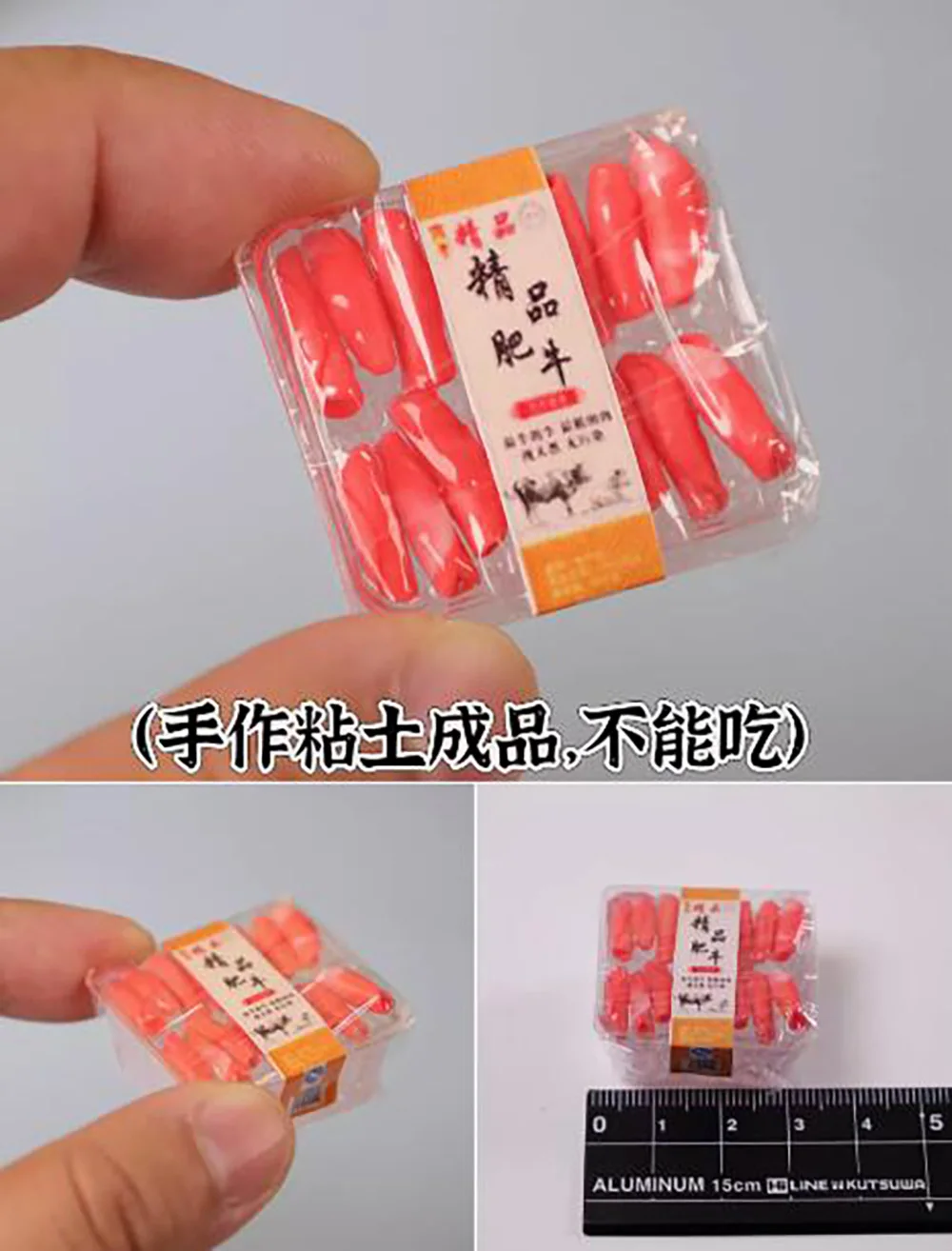1:12 Scale Miniature Dollhouse Food Hot Pot Clay Beef Meatball Fat Beef roll model for OB11 BJD Doll Accessories Toy