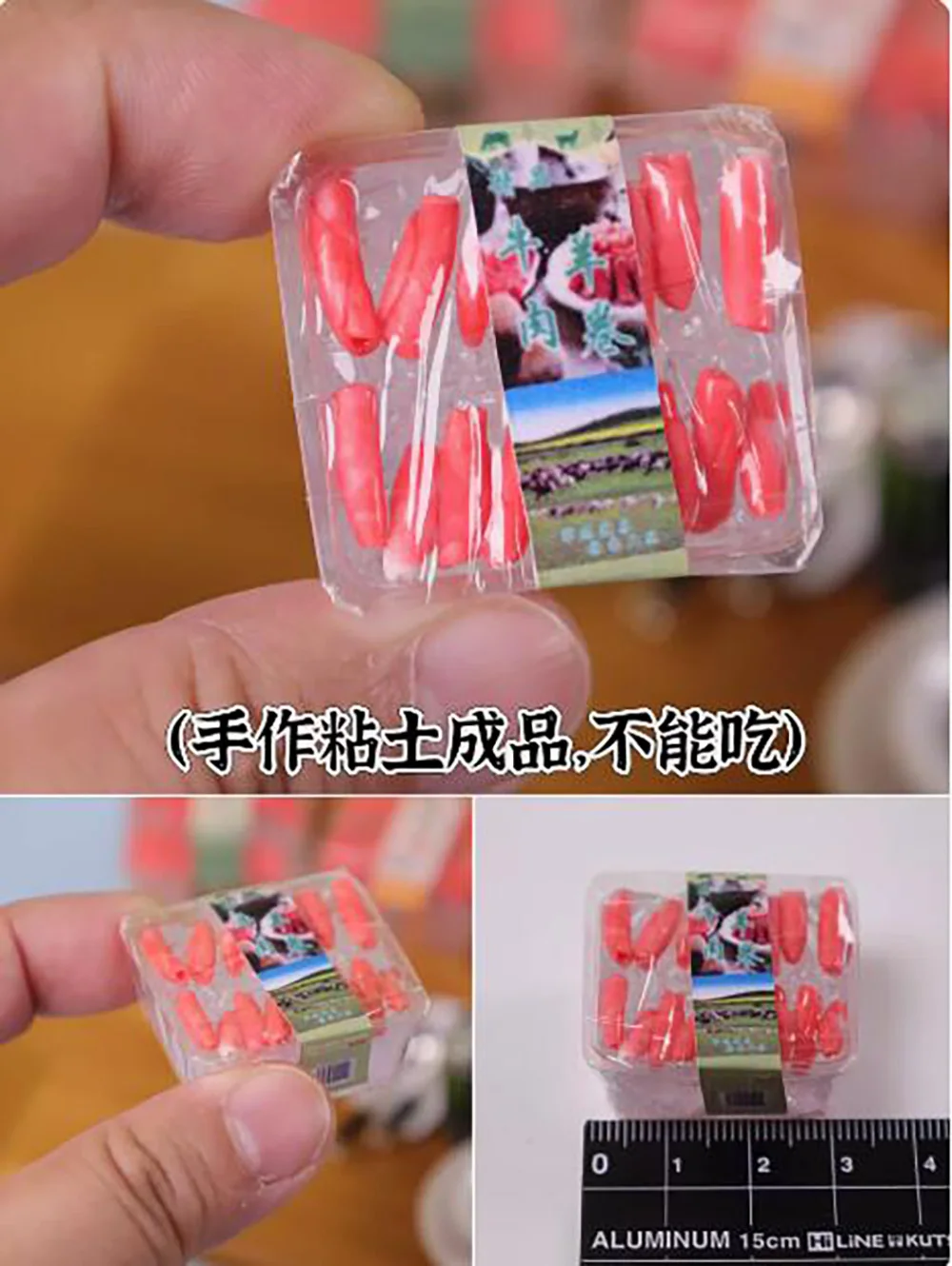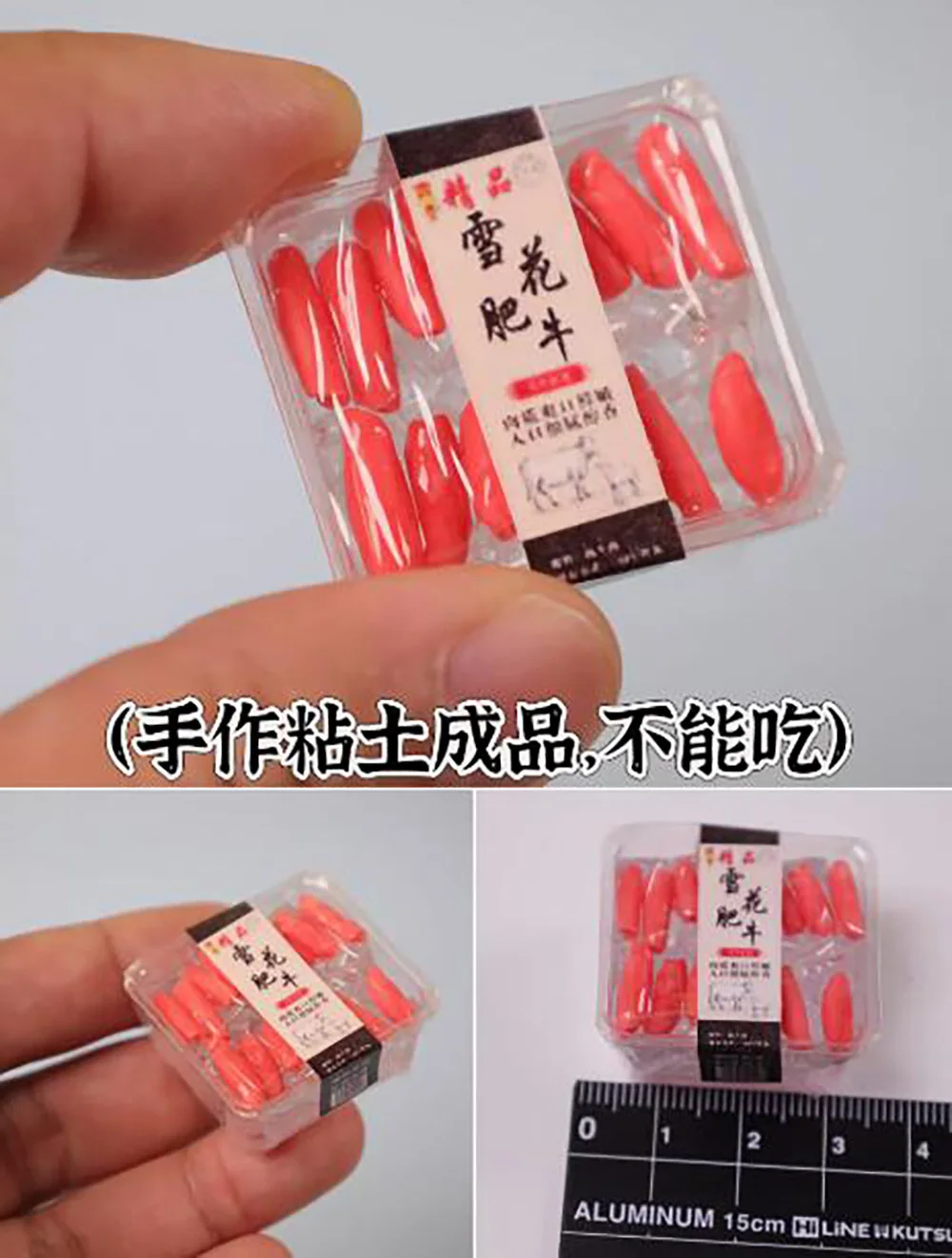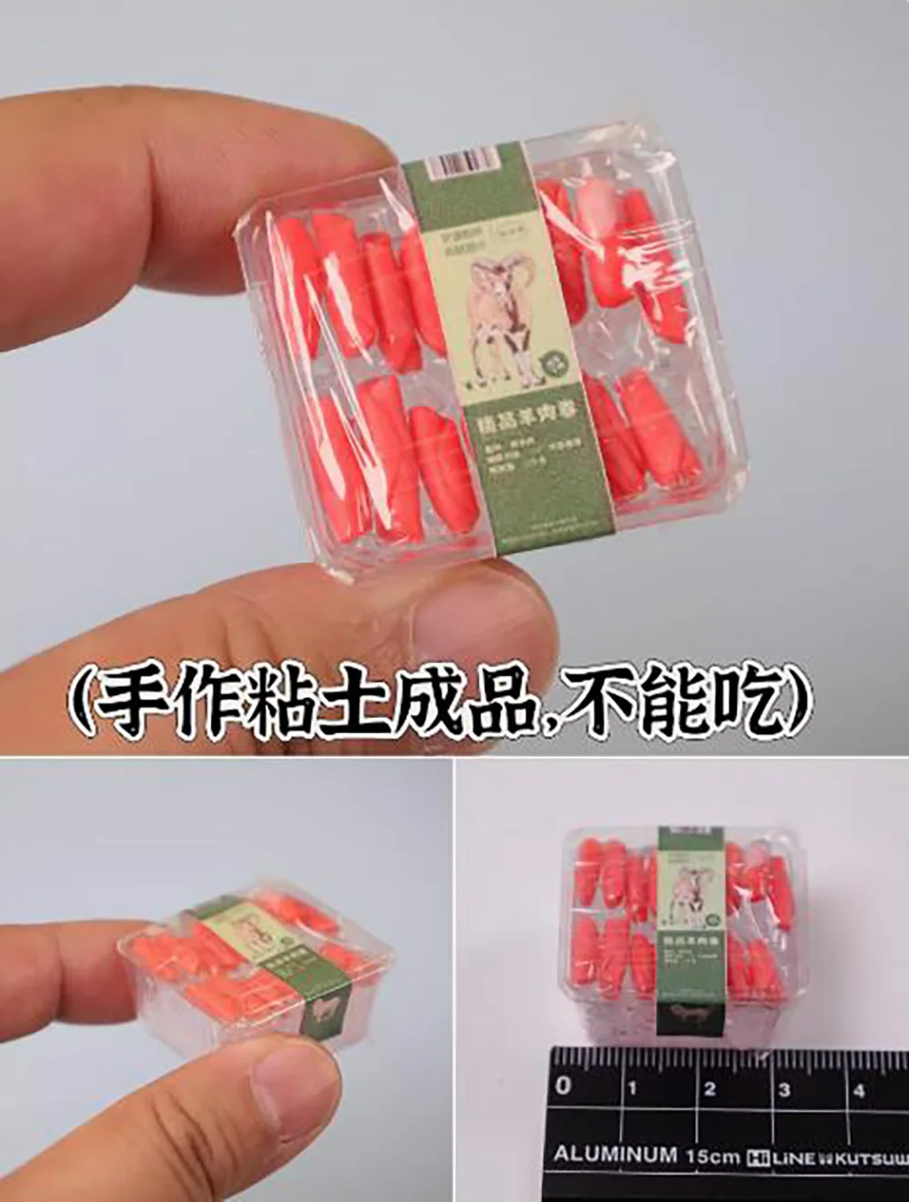 1:12 Scale Miniature Dollhouse Food Hot Pot Clay Beef Meatball Fat Beef roll model for OB11 BJD Doll Accessories Toy