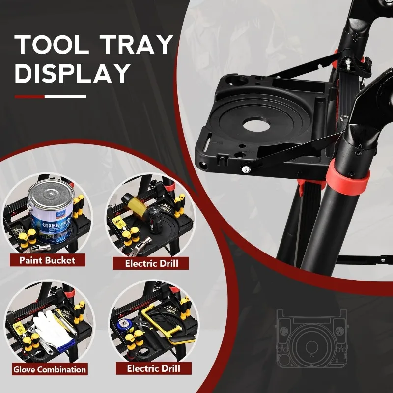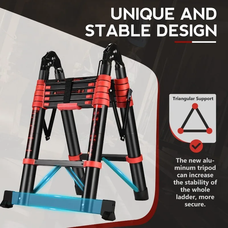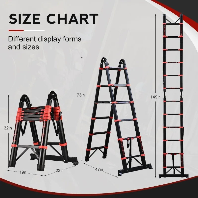 - Strong Aluminum Alloy: Large joints are used to increase the safety and longevity of the ladder. The hinge design makes it easier to switch the use form between the ladder and straight ladder, making it more convenient to use.