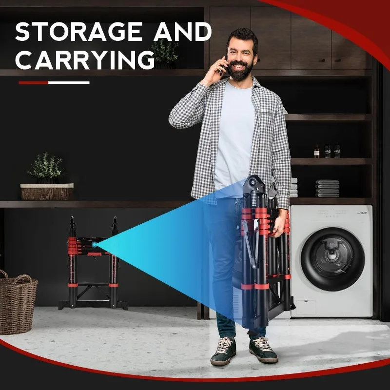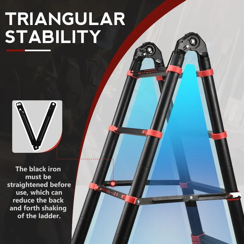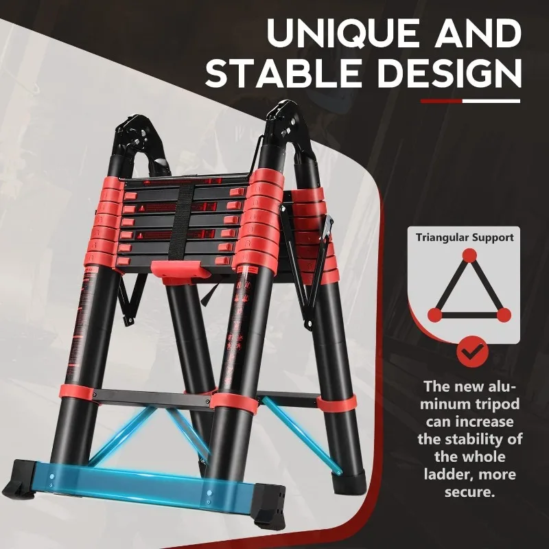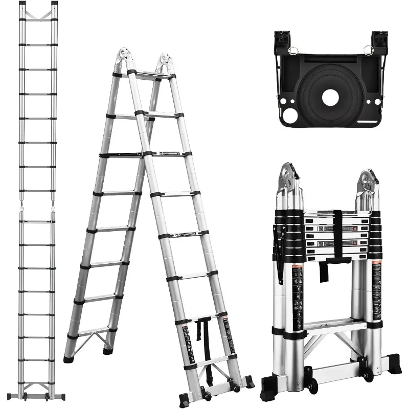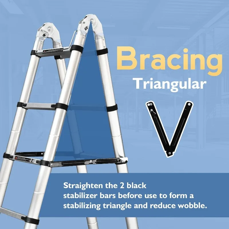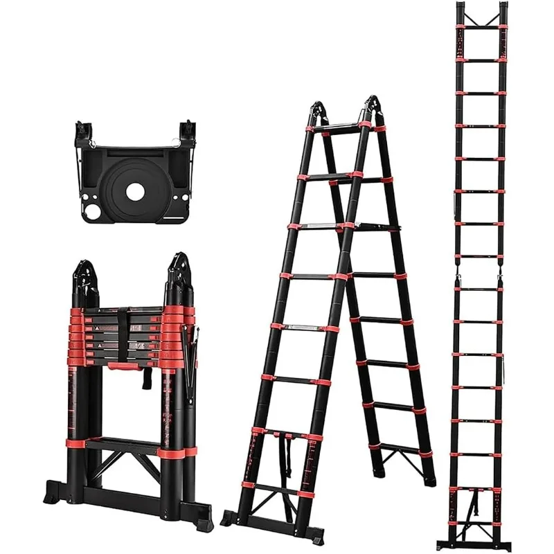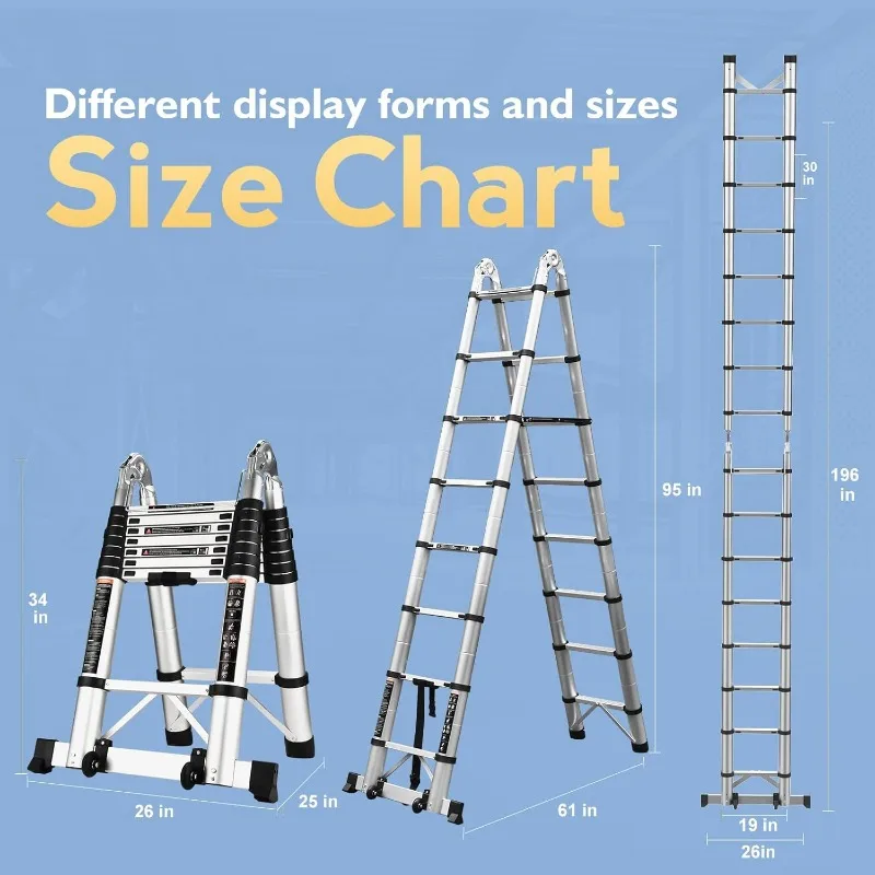 - Multi-purpose: The telescopic ladder is adjustable from 3 Ft to 16.5 Ft. It can be used as 8.2 Ft + 8.2 Ft A-frame ladder or 16.5 Ft straight ladder for roof, attic stairs and so on.