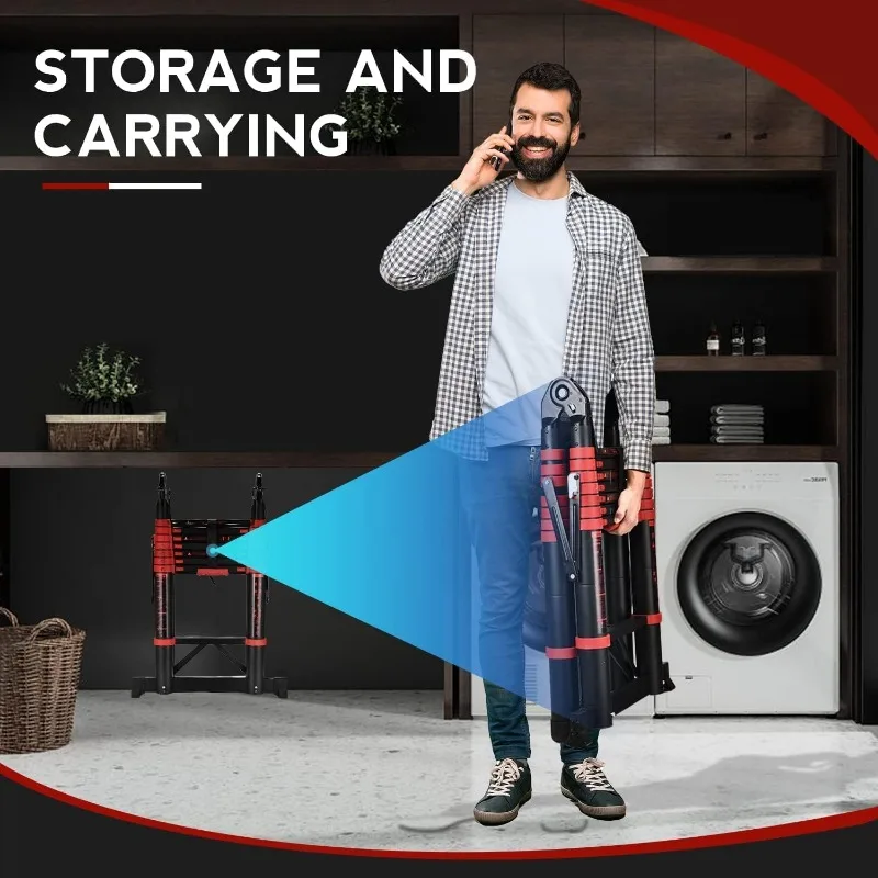 12.5 FT A Frame Telescoping Ladder, Portable Compact Aluminum Extension Ladder for Outdoor Camper Trips Motorhome,330lb Capacity