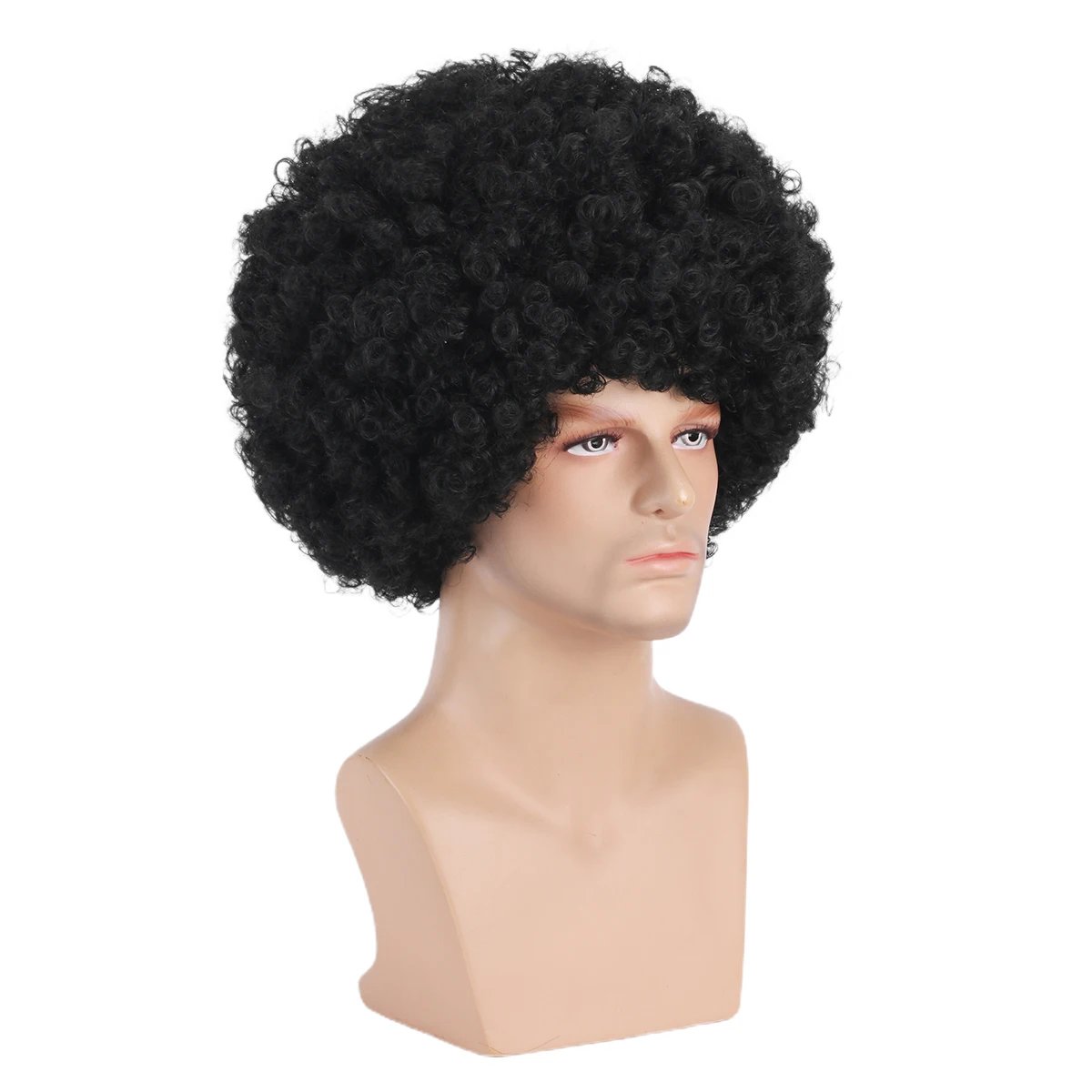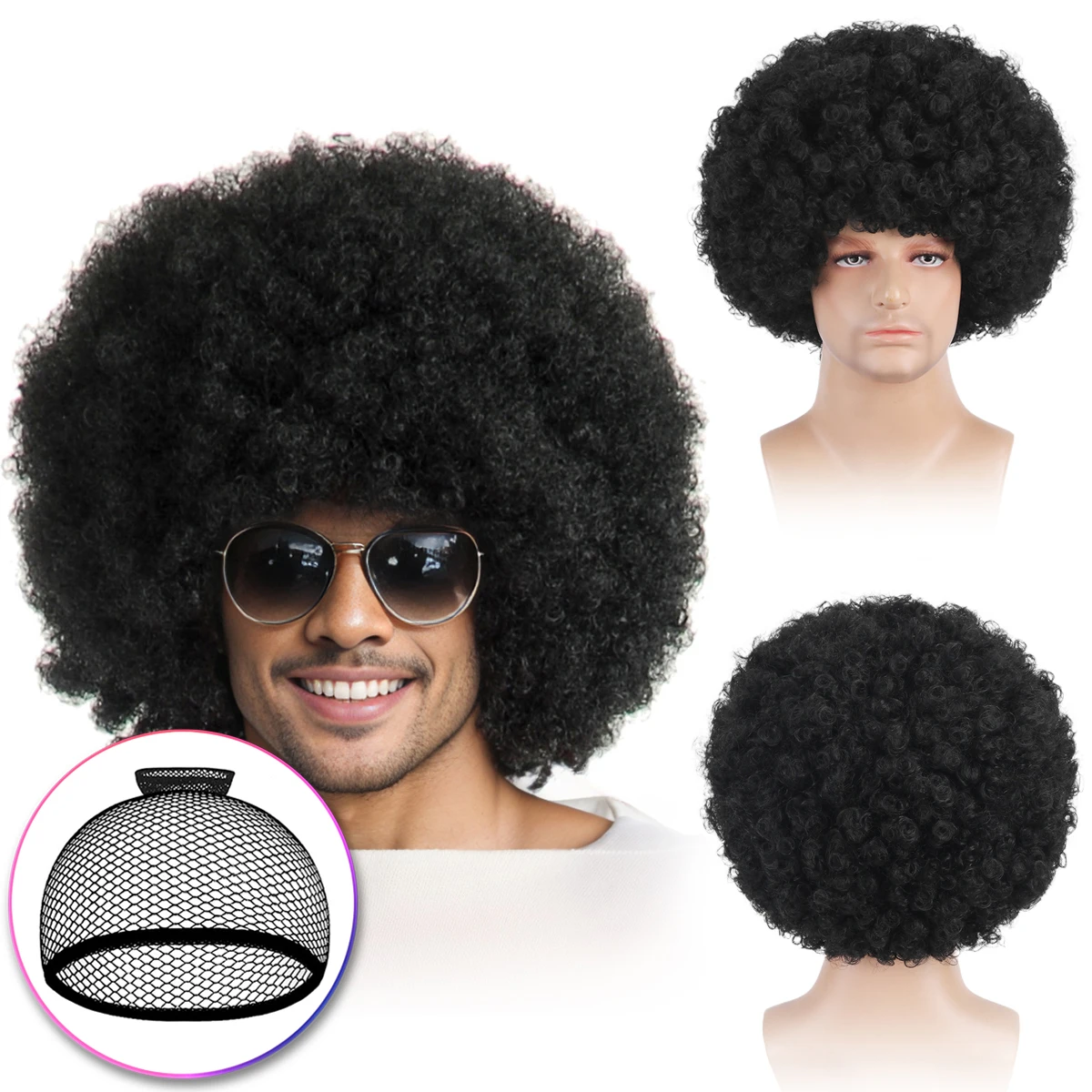 12 inch short roll explosive head hip-hop disco retro men’s synthetic wig+wig net hat suitable for holiday parties, dances, Hall